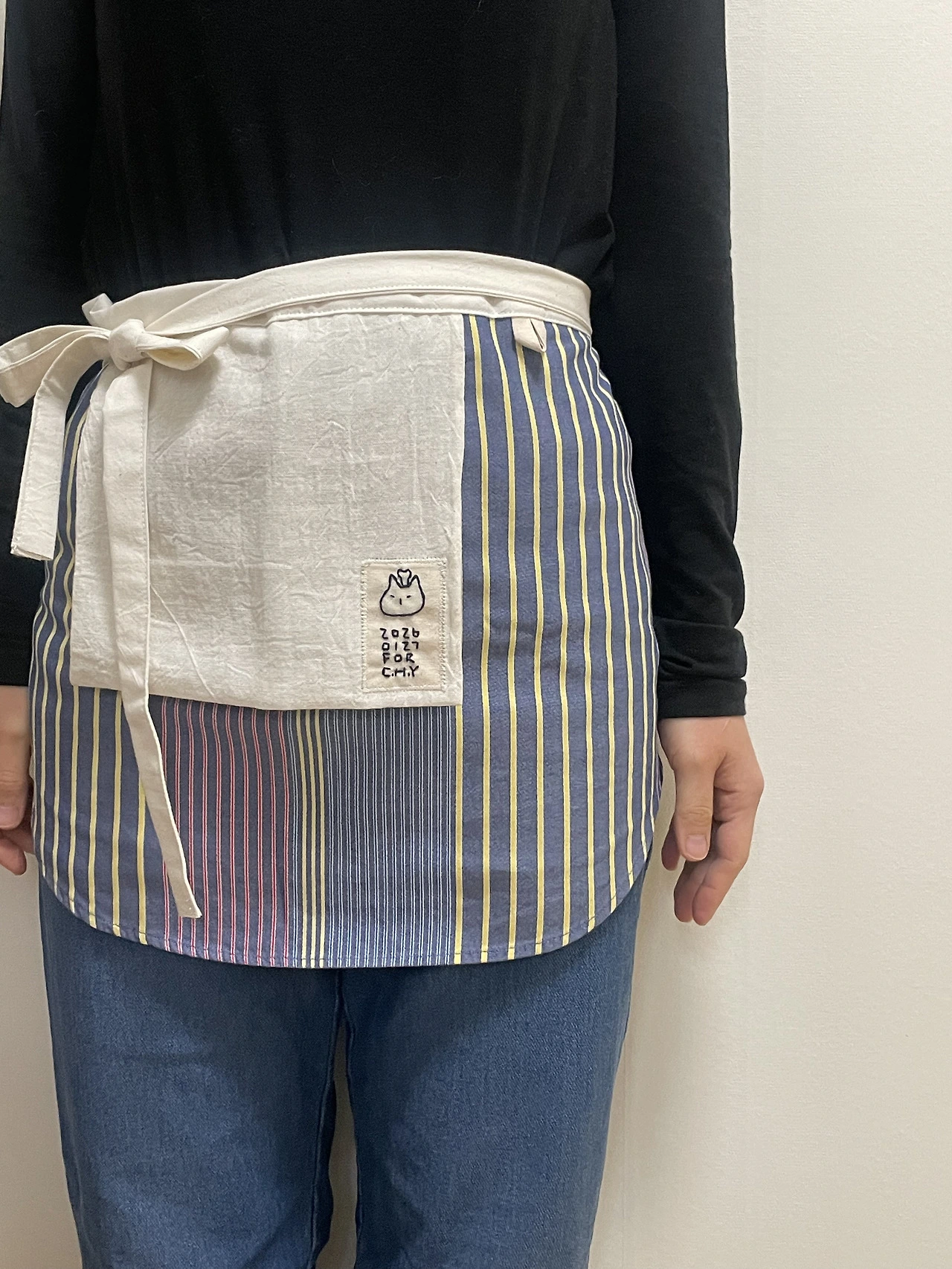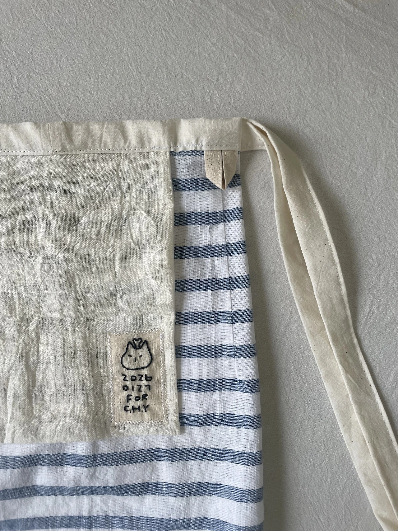 요리를 할 때마다 행주 둔 곳을 잊어버리곤 한다. 특히 식자재를 씻고 다듬을 때마다 물이 흥건한 두 손을 어찌하지 못할 때가 있다. 뚝뚝 떨어지는 물을 앞치마에 대충 닦는 것도 영 게운치가 않다. 막노동 인부처럼 목에 두를까, 멀끔한 양복 행거치프처럼 가슴에 꽂을까, 요리조리 고민하다 앞치마에 붙이기로 했다. 무해하고 지구 친화적인 스스로를 살리는 제복. 음식이 주는 평화의 힘을 믿는다. 헌 셔츠를 자르고 소창원단으로 만든 행주를 연결하고 한 땀 한 땀 손바느질로 수놓은 라벨까지 달았다. 이 주 넘게 직접 써보니 더 애착이 갔다. 배려와 정성이 담긴 도구는 노동의 퀄리티를 업그레이드시키는 법. 화려하고 그럴듯한 음식을 만들진 못하지만 나만의 작은 식당의 셰프가 된 거 같다.