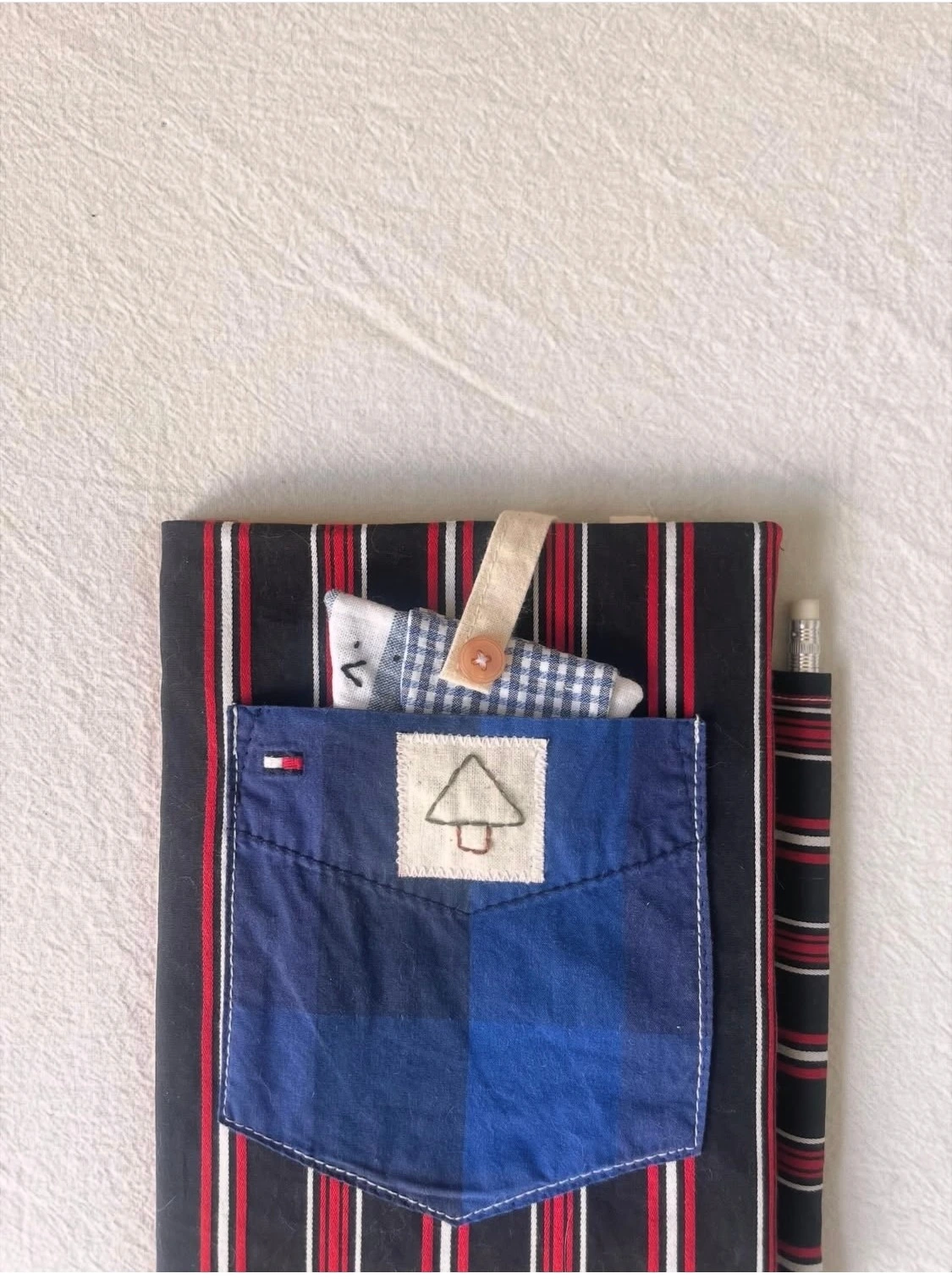 일제강점기 때 어린 시절을 보낸 외할머니께서는 주머니 부자셨다. 저고리며 바지며 은밀한 속고쟁이까지 자투리천을 네모 반듯하게 잘라 시크릿 포켓을 만들어 붙이시는 게 취미셨다. 그 도라에몽 주머니에선 종종 진주 같은 사탕이 톡톡 튀어나왔다. 이러니 말도 배우기 전인 손녀는 그 주머니만 바라보고 살았다. 세상 모든 존재에겐 저마다의 공간이 필요하다. 새에게는 나무, 고양이에게는 숨숨집, 캥거루에겐 아기 주머니… 책에는 북커버, 동전에겐 지갑, 안경에겐 안경집이 필요하다. 누구나 이 권리는 존중받아야 한다. 빼길 수 있다는 불안은 뺏으려는 마음이 되어 전쟁과 침략의 이유가 된다. 더 큰 시공간을 지배하려는 욕망은 점점 더 우리를 외롭게 만든다. 주말을 보내며 전쟁 소식을 들었다. 어수선한 분위기 속 누군가의 작고 소중한 집을 지켜주고 싶다는 마음이 들었다. 나무에 새집을 달고 골목에 길냥이 집을 설치하는 건 결국 스스로를 지키고 싶은 마음일 것이다. 그런 마음으로 북커버를 만들었다. 헌 옷의 디테일을 활용해 주머니를 만들고 앙증맞은 북마크도 손바느질로 달아주었다. 책 속의 감동과 다이어리 속 추억들을 고스란히 지켜주는 포켓 요정들. 할머니의 알사탕만큼 호감가는 비주얼이다.