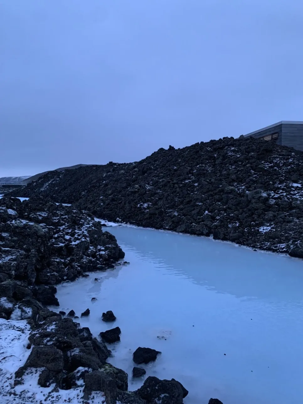 블루라군에서 방수팩에 넣은 아이폰으로 풍경과 셀카를 몇 장 찍었다. 호텔로 가는 버스를 기다리던 중 아이폰 화면이 초록색으로 깜빡이더니 완전히 블랙아웃되었다. 방수팩은 푸른 우윳빛 블루라군 유황물로부터 인이폰을 지키지 못했다.
