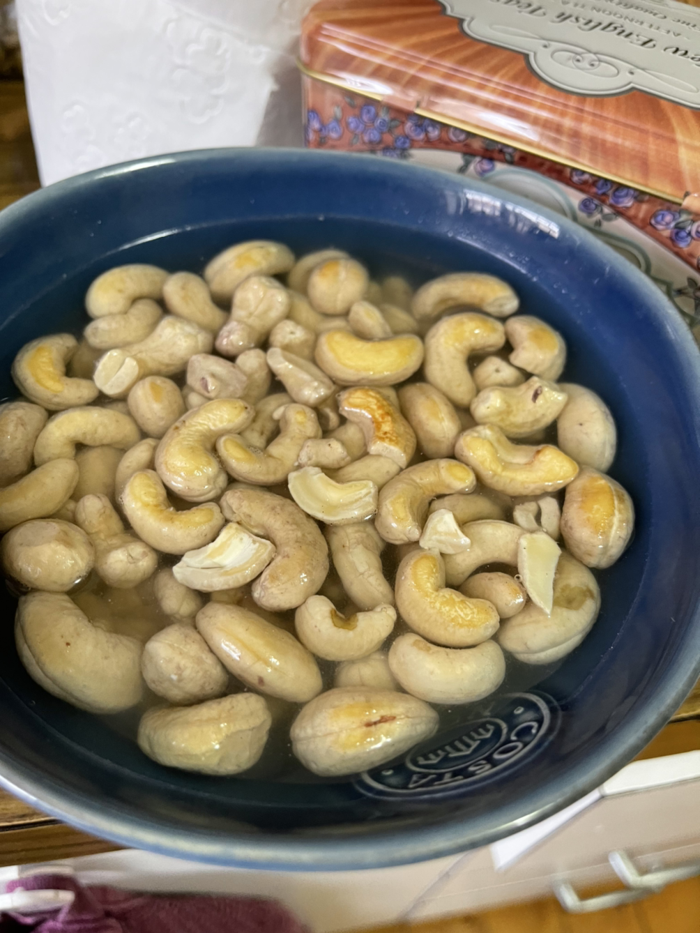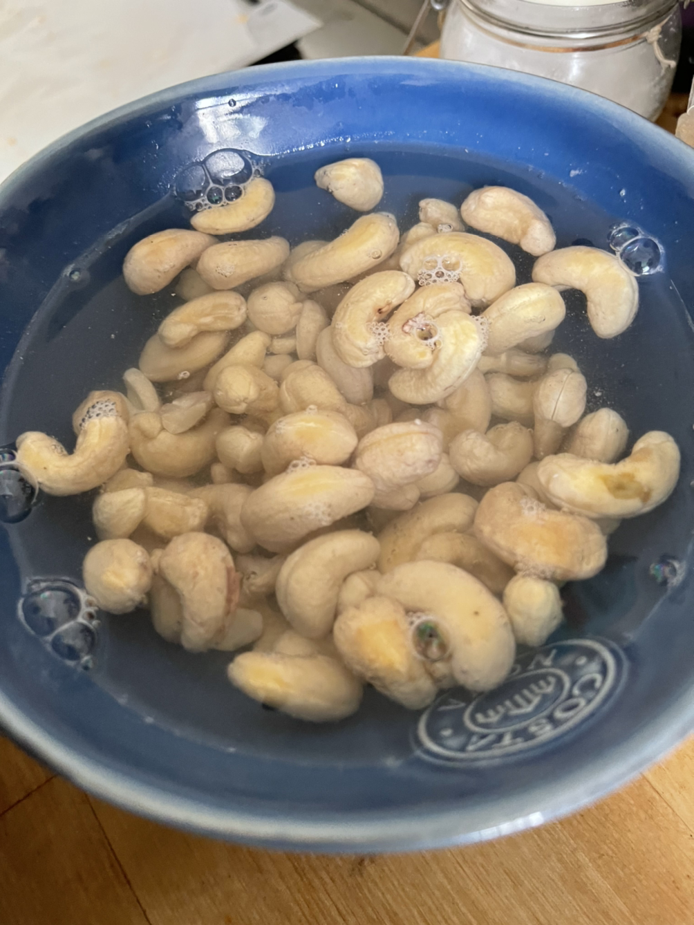 캐슈너트은 캐슈너트 우유를 만들었다. 씻어서 불려서