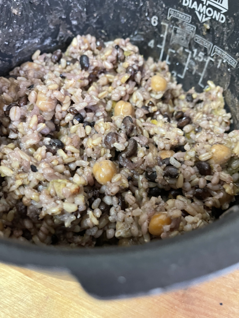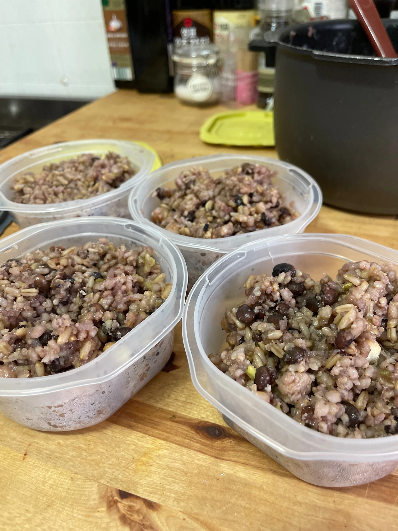 12가지 잡곡에 빨간 강낭콩 그리고 검정콩을 더 넣었다.