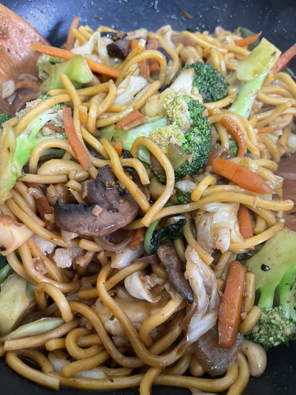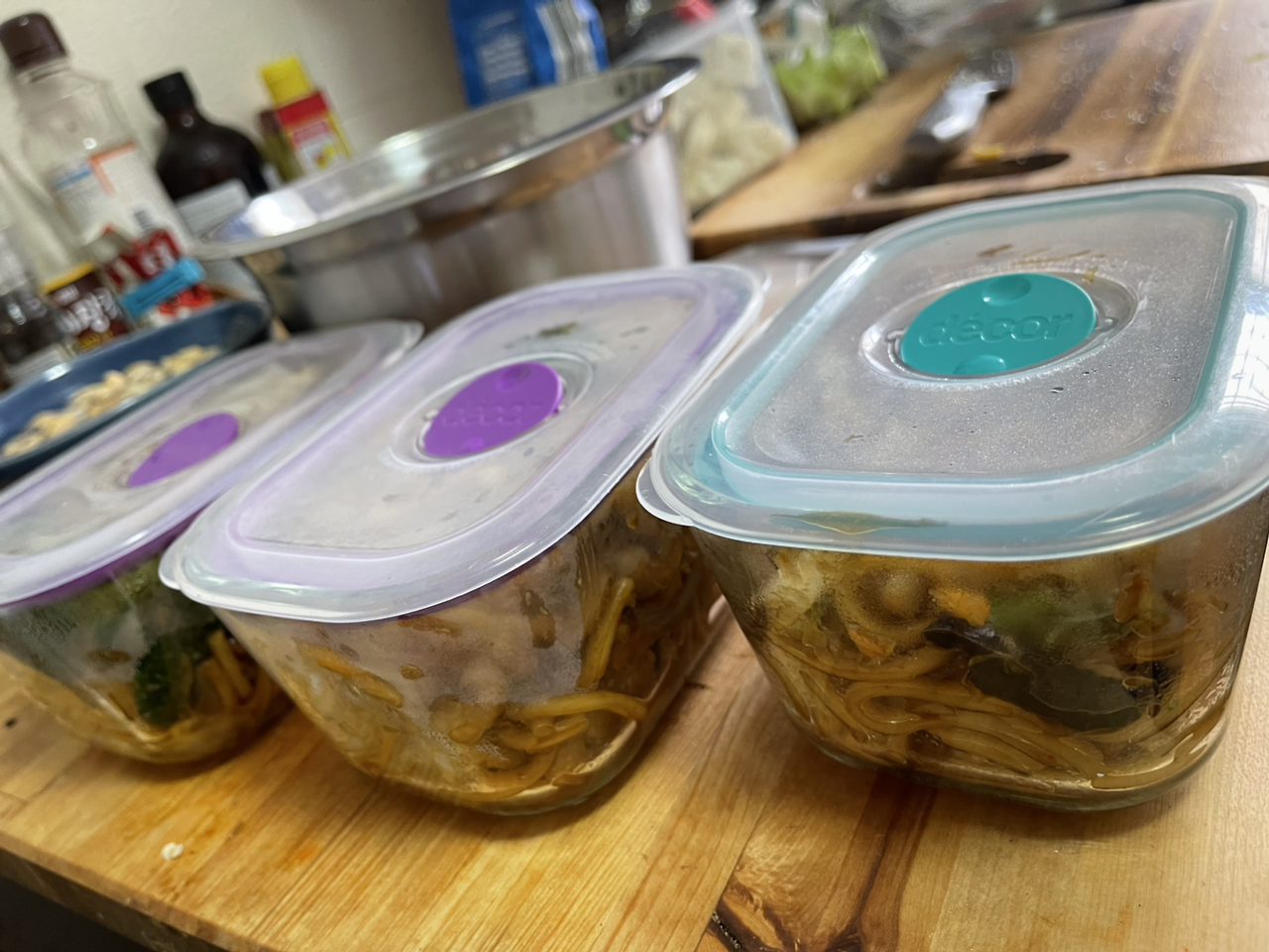 면은 호킨 누들인데 요리하기 전에 껍질을 벗겨서 전자레인지에 2분 정도 돌리면 빠르다.