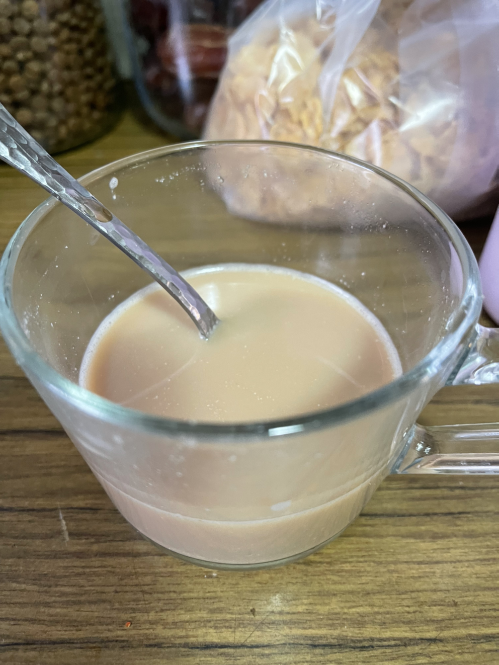 아래 보이는 것처럼 홍차에 섞어서 먹었다.