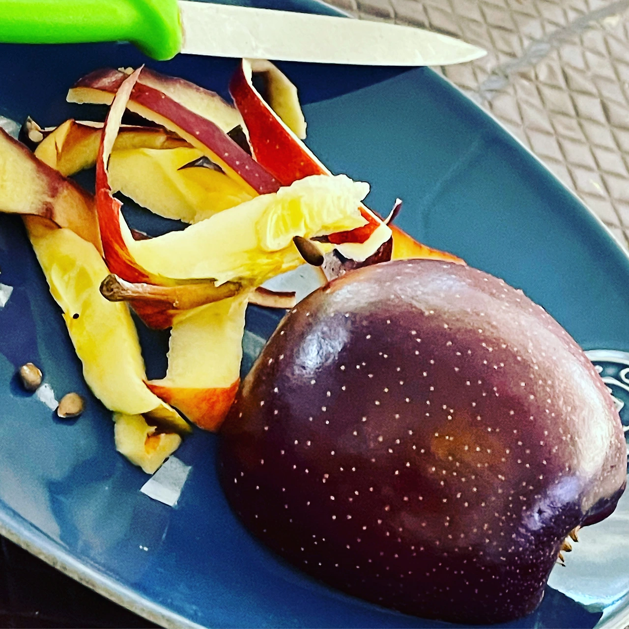 브라보 사과라고 이름이 붙은 새로운 사과 한 개 사 와서 맛을 봤다.