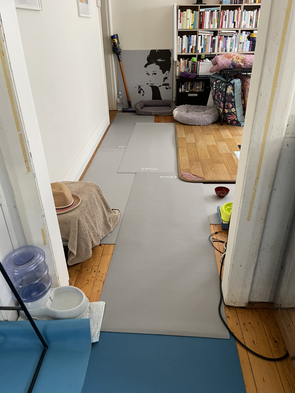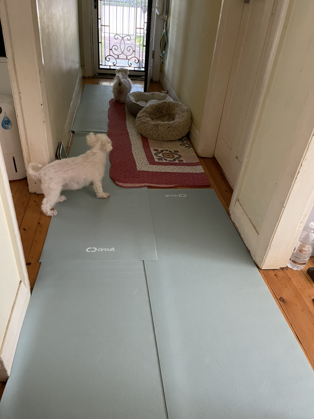 그리고 모든 통로에 요가 매트를 전부 깔았다.