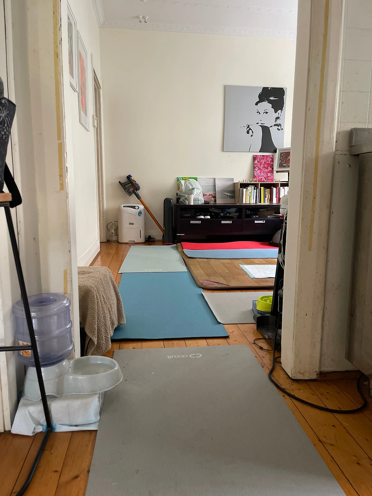 노견을 위해 깔아놓은 요가매트