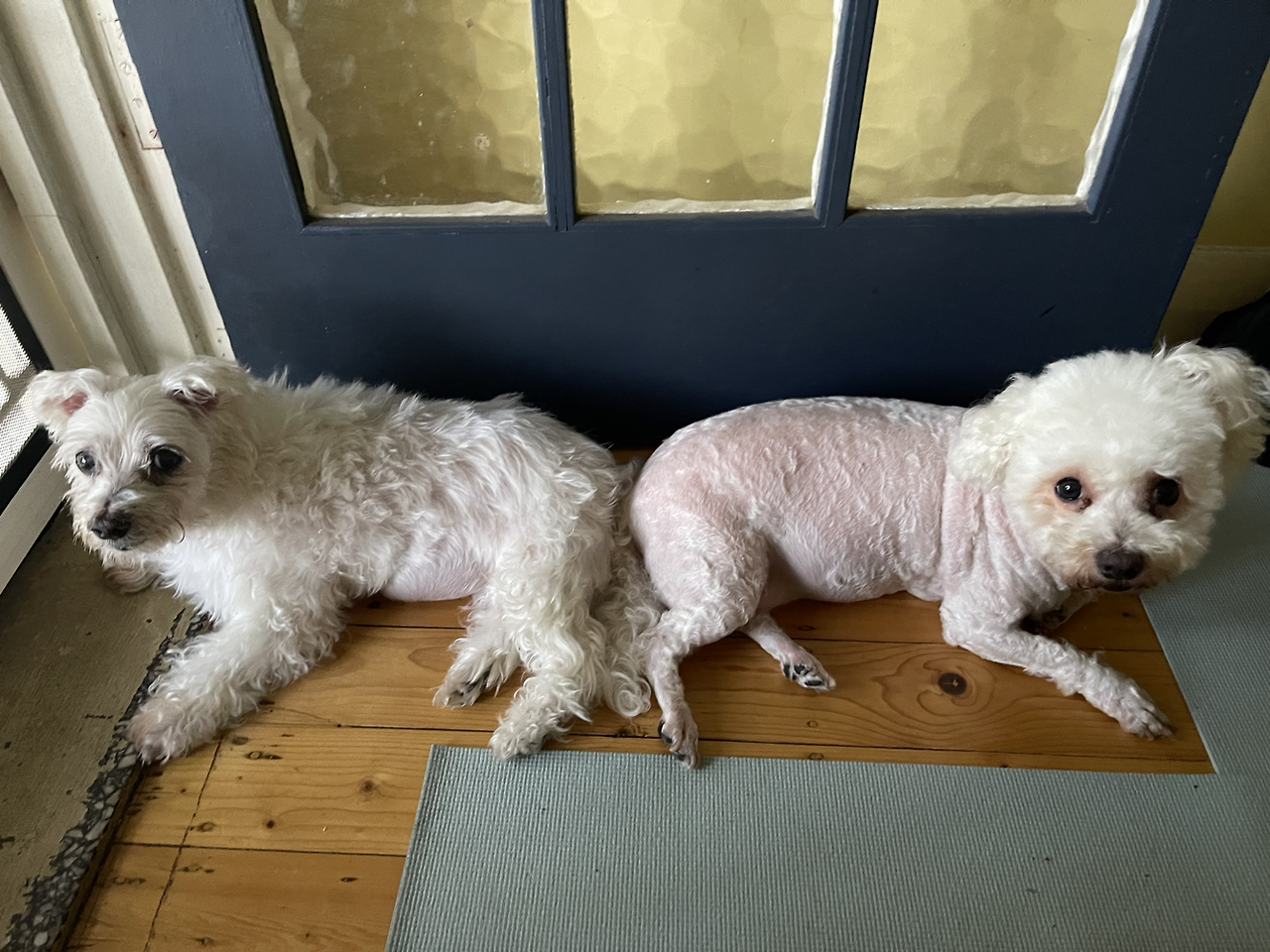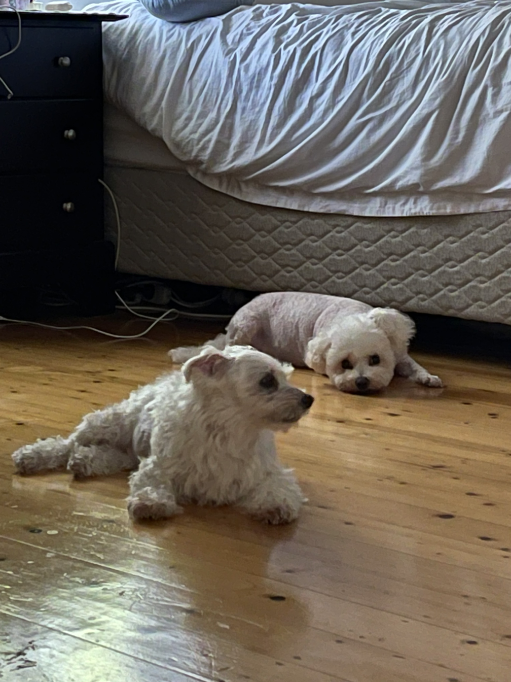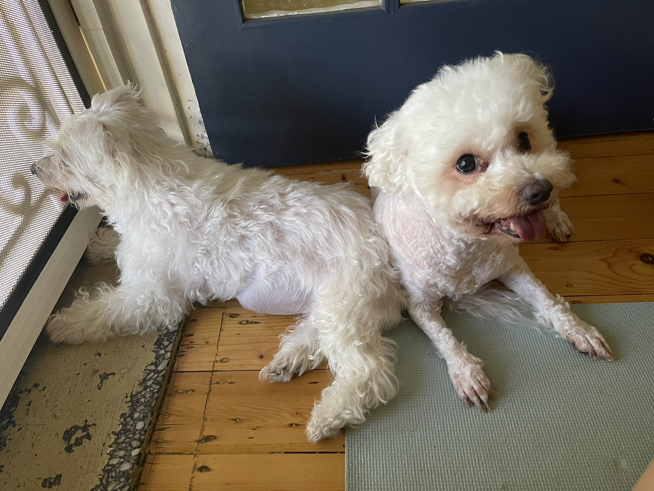 왼쪽이 노견인데 엉덩이를 붙인 사진을 남기고 싶어 사진을 찍었는데 동시에 나를 쳐다보니 신기했다.