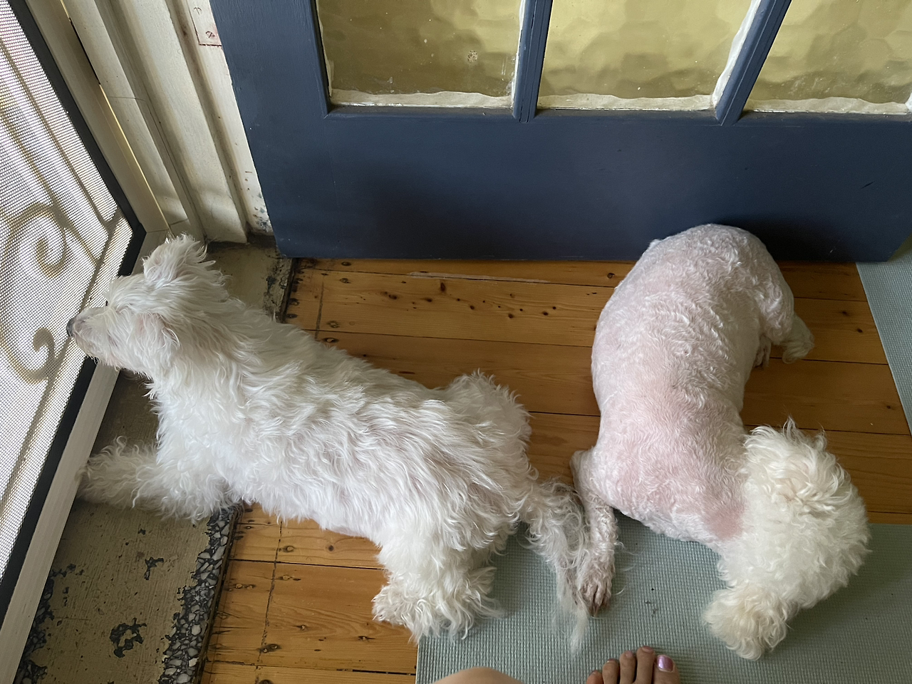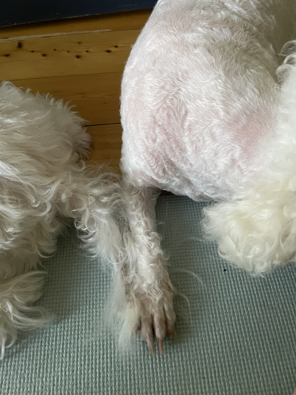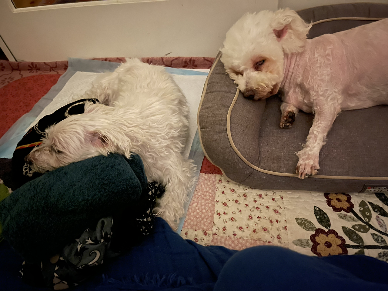 왼쪽이 노견인데 엉덩이를 붙인 사진을 남기고 싶어 사진을 찍었는데 동시에 나를 쳐다보니 신기했다.