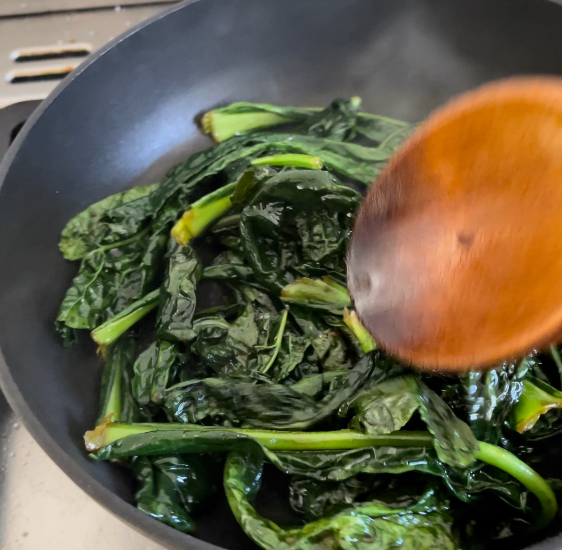 물기를 털고 볶았다. 올리브 오일에 간장을 조금 넣고 달달하게 볶았다.