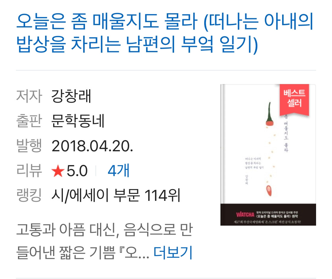 ’ 오늘은 좀 매울지도 몰라 라는 책을 드라마로 만든 짤을 보게 됐다.