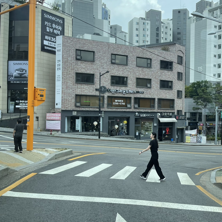 저 연한 밤색 건물 앞에서 8살의 나는 동생과 함께 신호등을 건너 씩씩하게 학교를 다녔다.