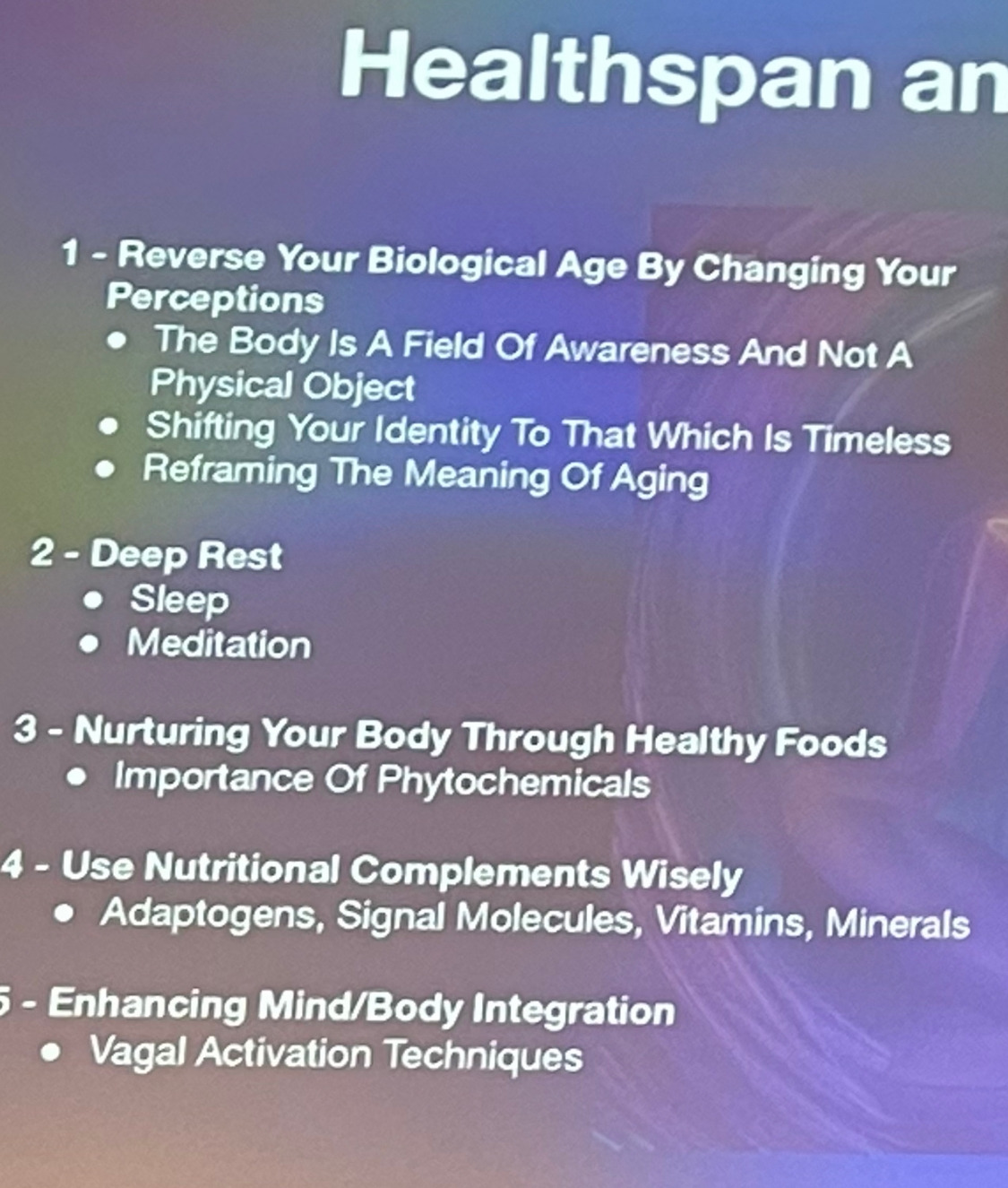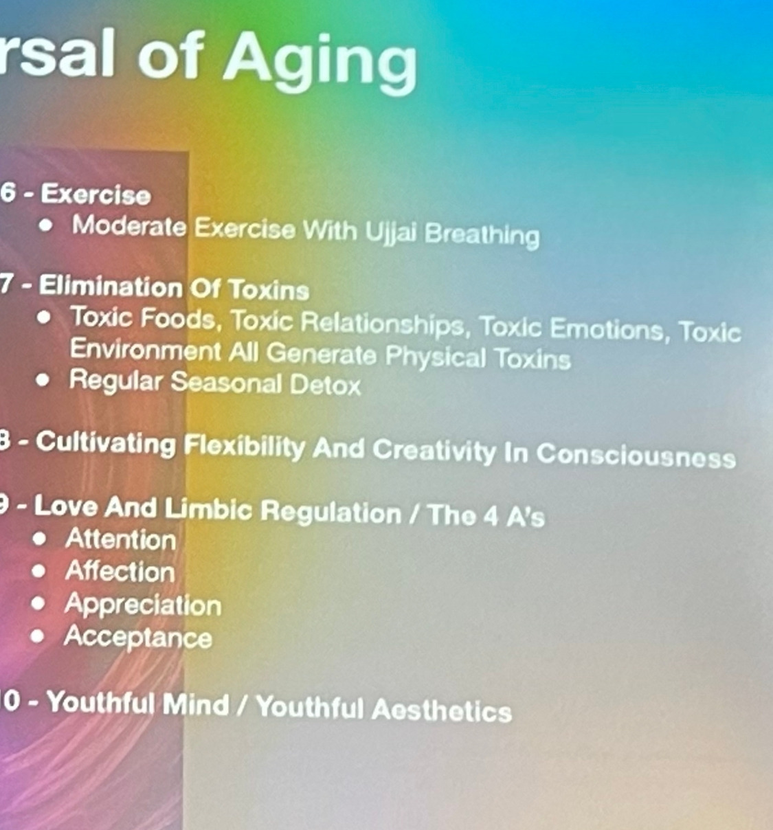 늙지 않고 건강하게 사는 방법에 대한 이야기도 중요했다.