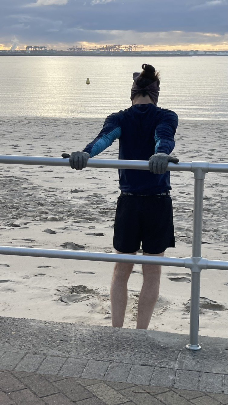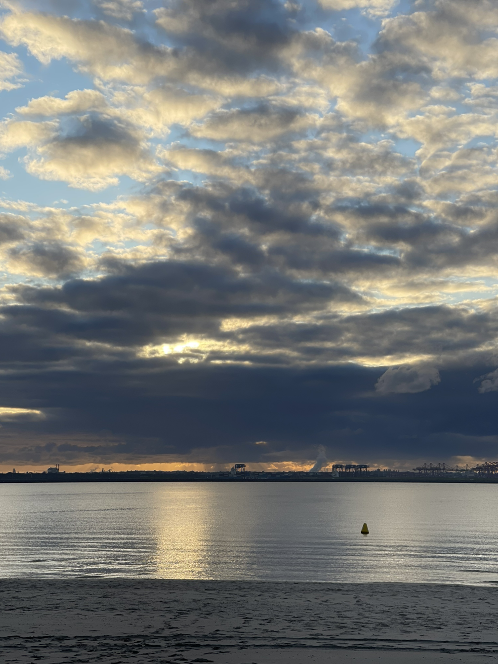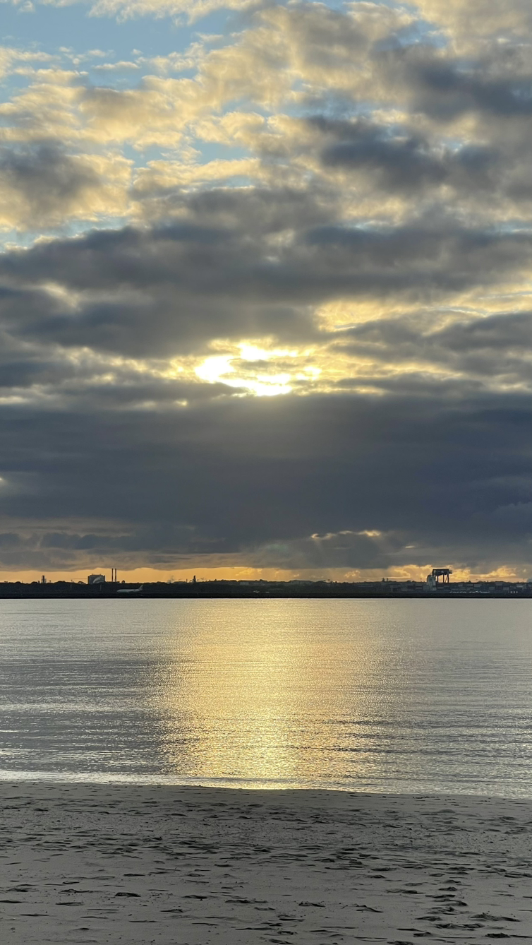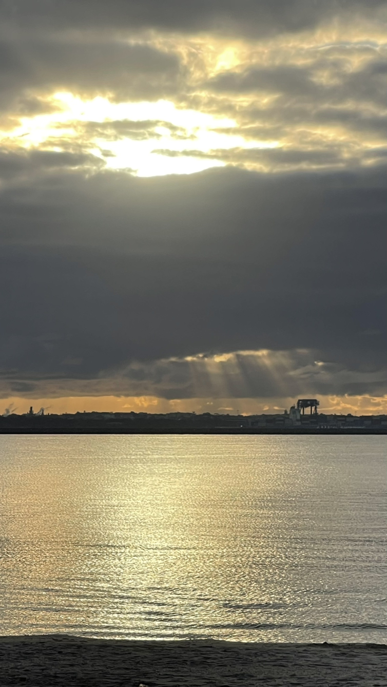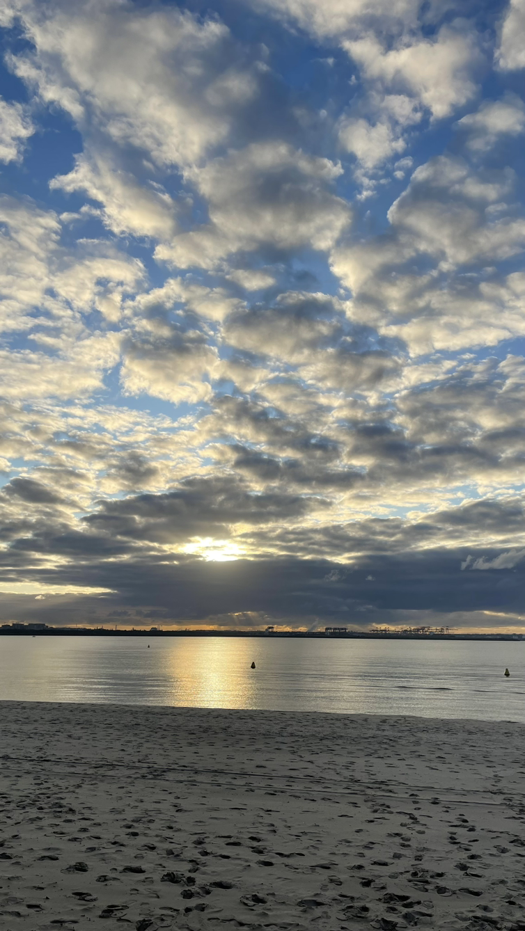 태양의 에너지를 받고 싶어 바닷가를 걸었고 태양은 조금씩 떠오르고 있었다.