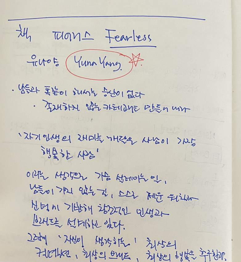 읽으면서 운명이라고 생각해 그렇게 적어 넣었다.