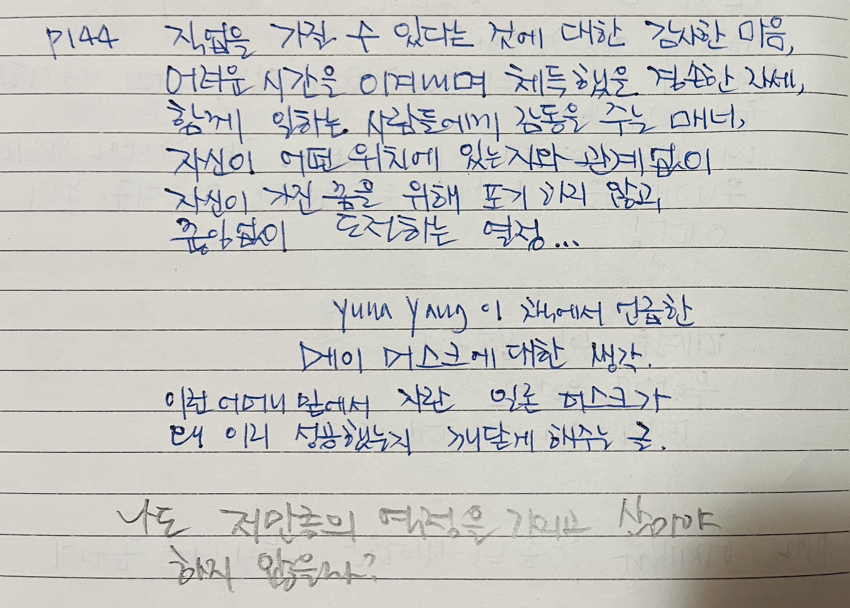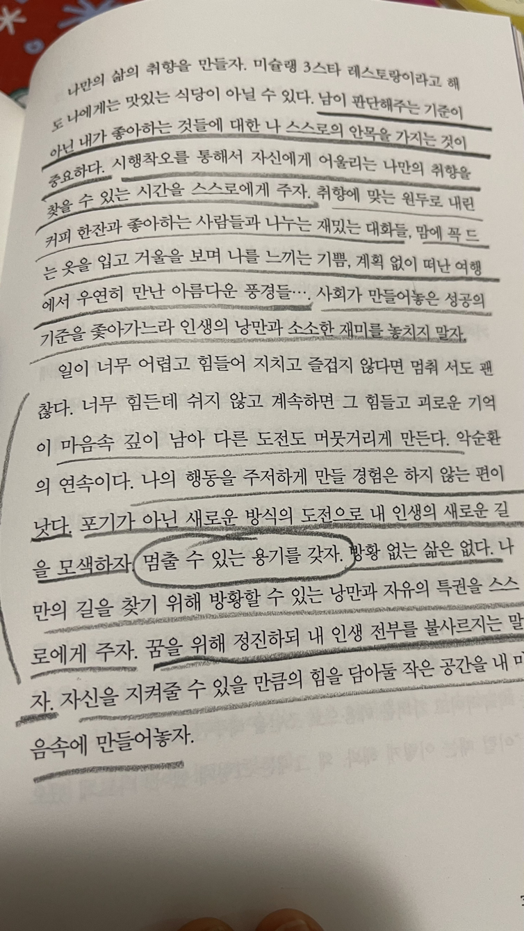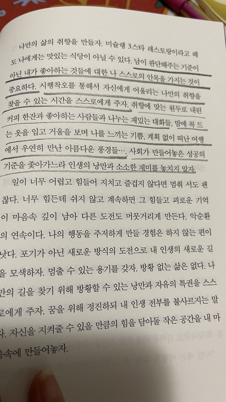 많은 구절에서도 작가의 마음가짐과 스스로의 다독임과 철학이 보인다.
