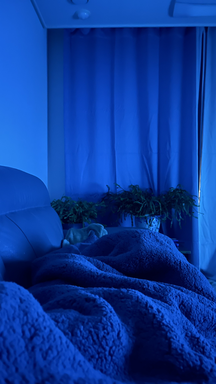 내 집에는 없는 소파 위에 풍성한 겨울 이불을 깔고 덮고