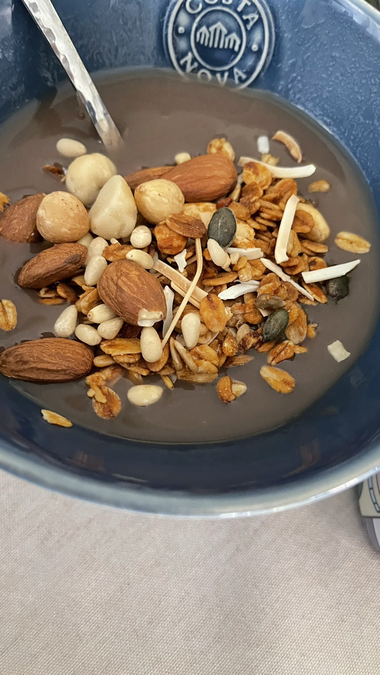 거기에 무슬리 조금 바나니 한 개 넣어서 먹었다.
