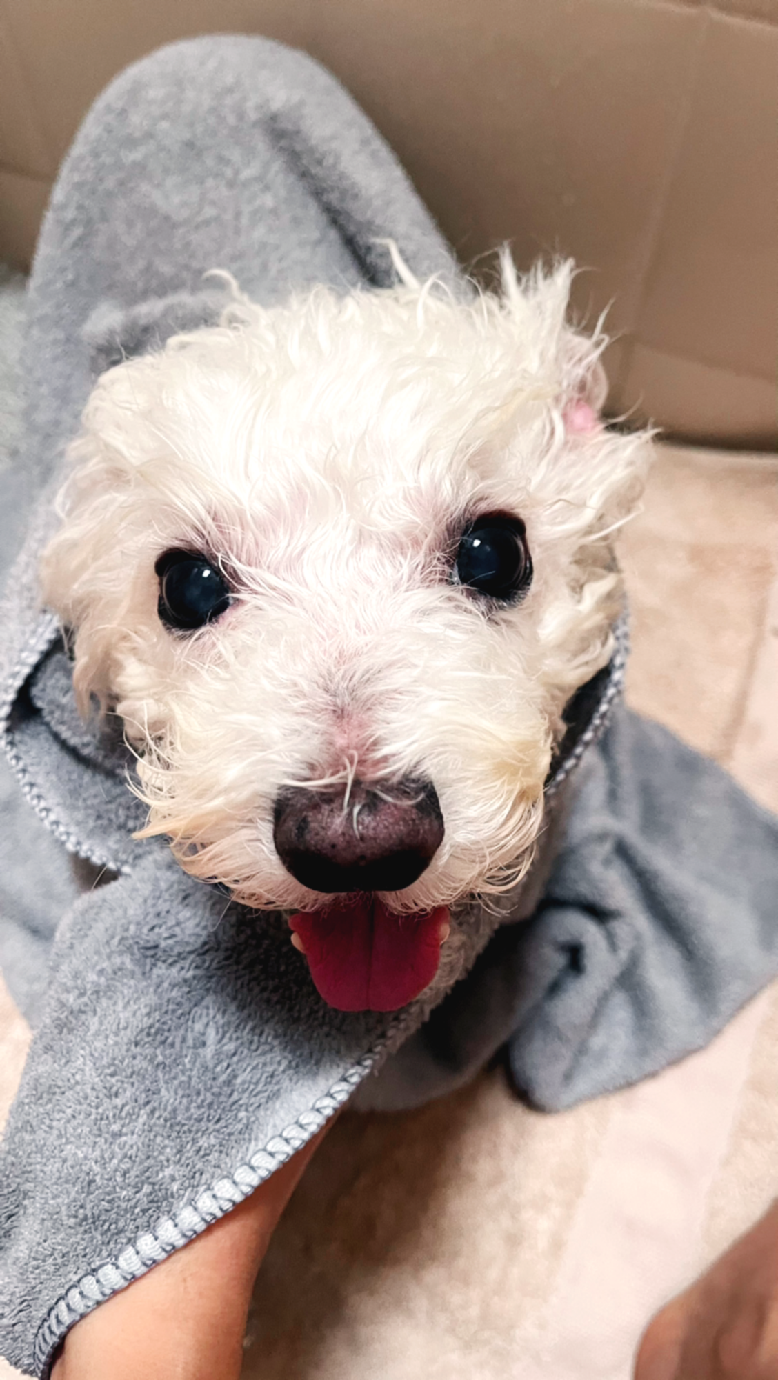 목욕을 끝내고 얼른 물기 닦아주는데
