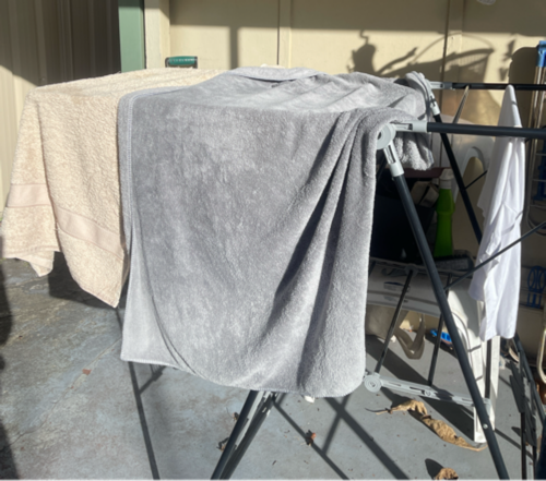 뒷마당에 나와 수건을 널고 있는데