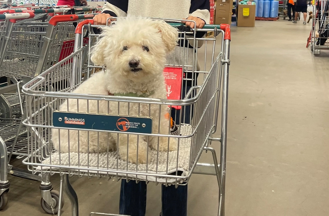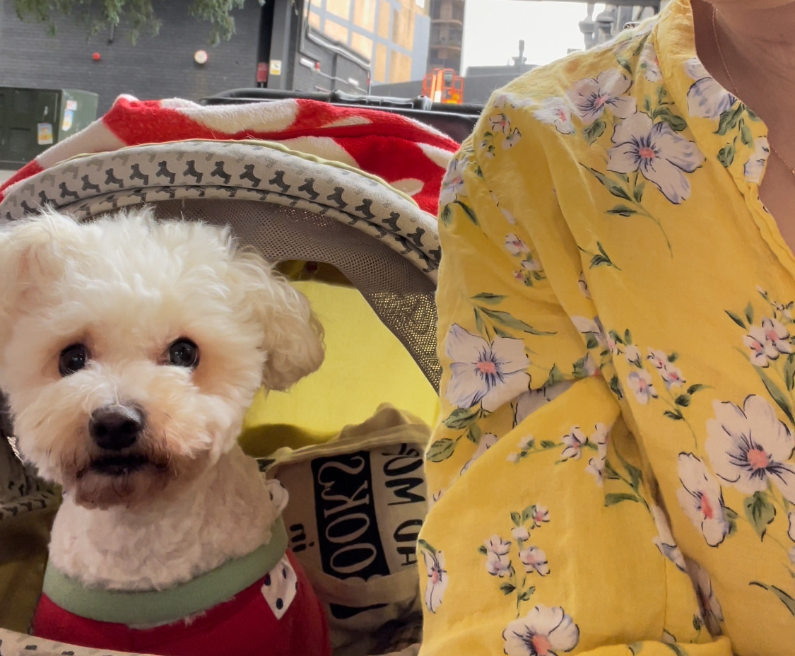 언니가 쓰던 강아지 유모차 말고 소리의 유모차를 새로 장만했고 조금씩 연습해서 슈퍼마켓에 데리고 다니기 시작했다.