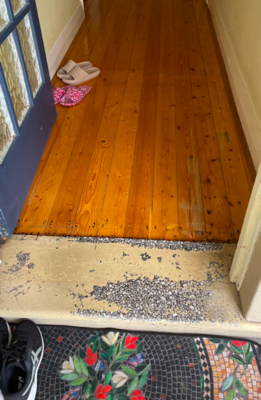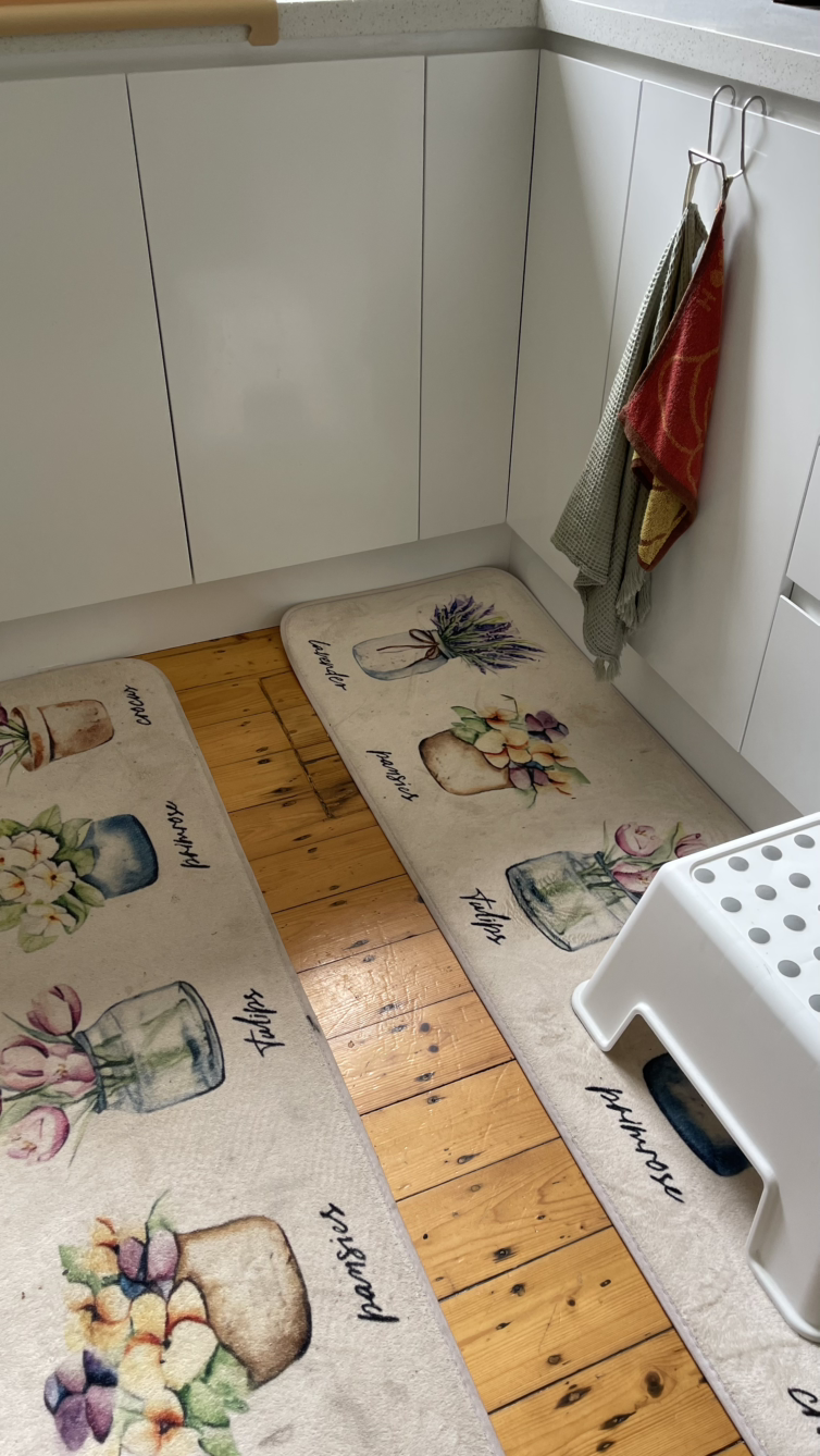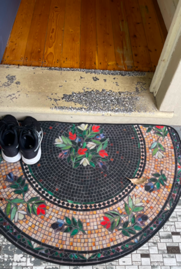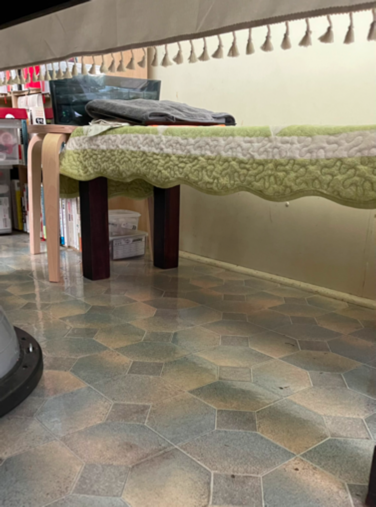 테이블 앞에 저 의자밑에 면으로 된 천을 깔아 두었었다.