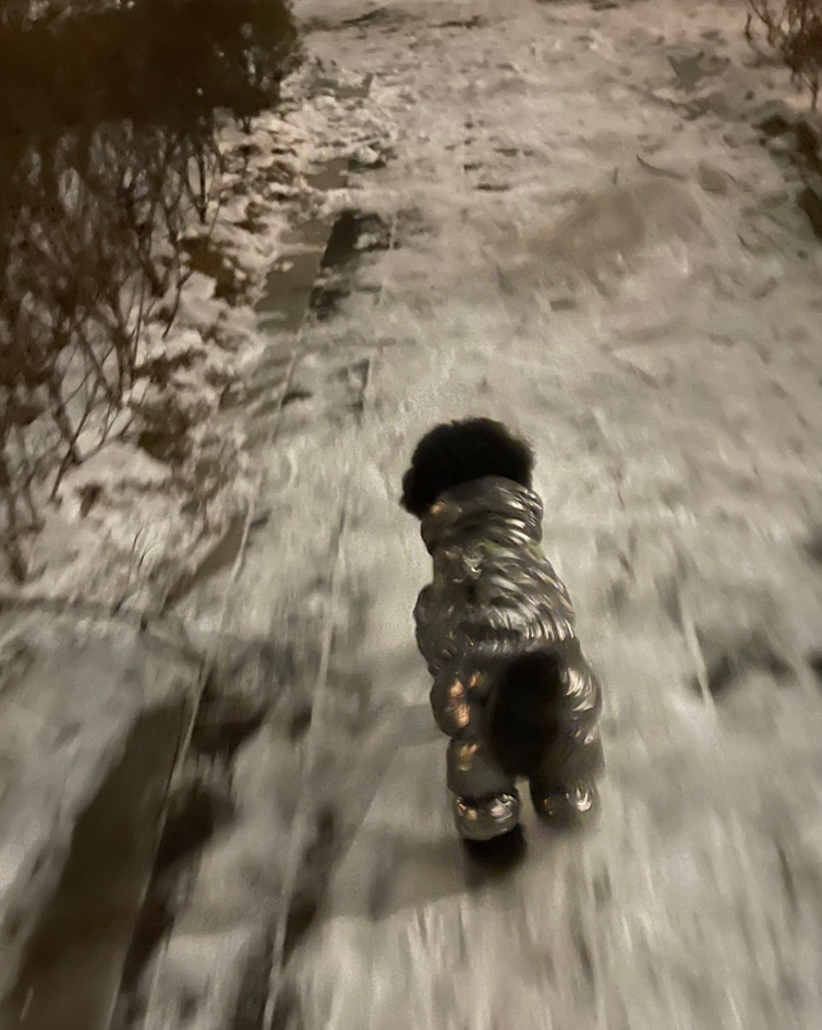 날이 추우니 귀여운 바람막이 옷을 입고 산책하는 모습이 귀엽기만 하다.