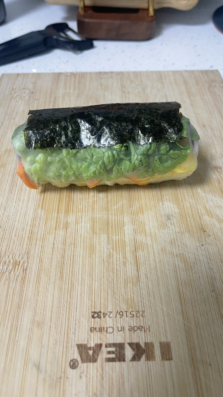 오늘은 유튜브에서 배워서 야채 월남쌈에 김을 덧붙여 먹었다.