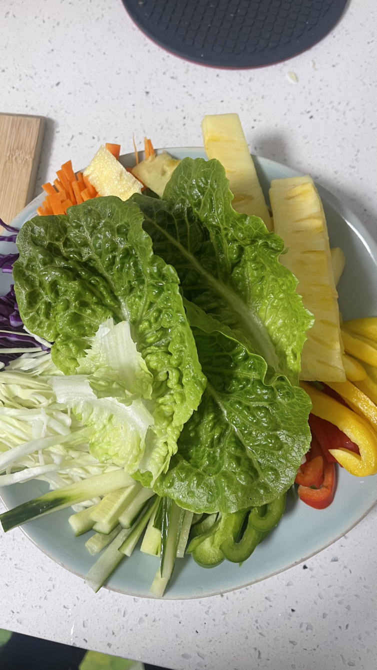 적신 월남쌈에 야채와 파인애플까지 넣고
