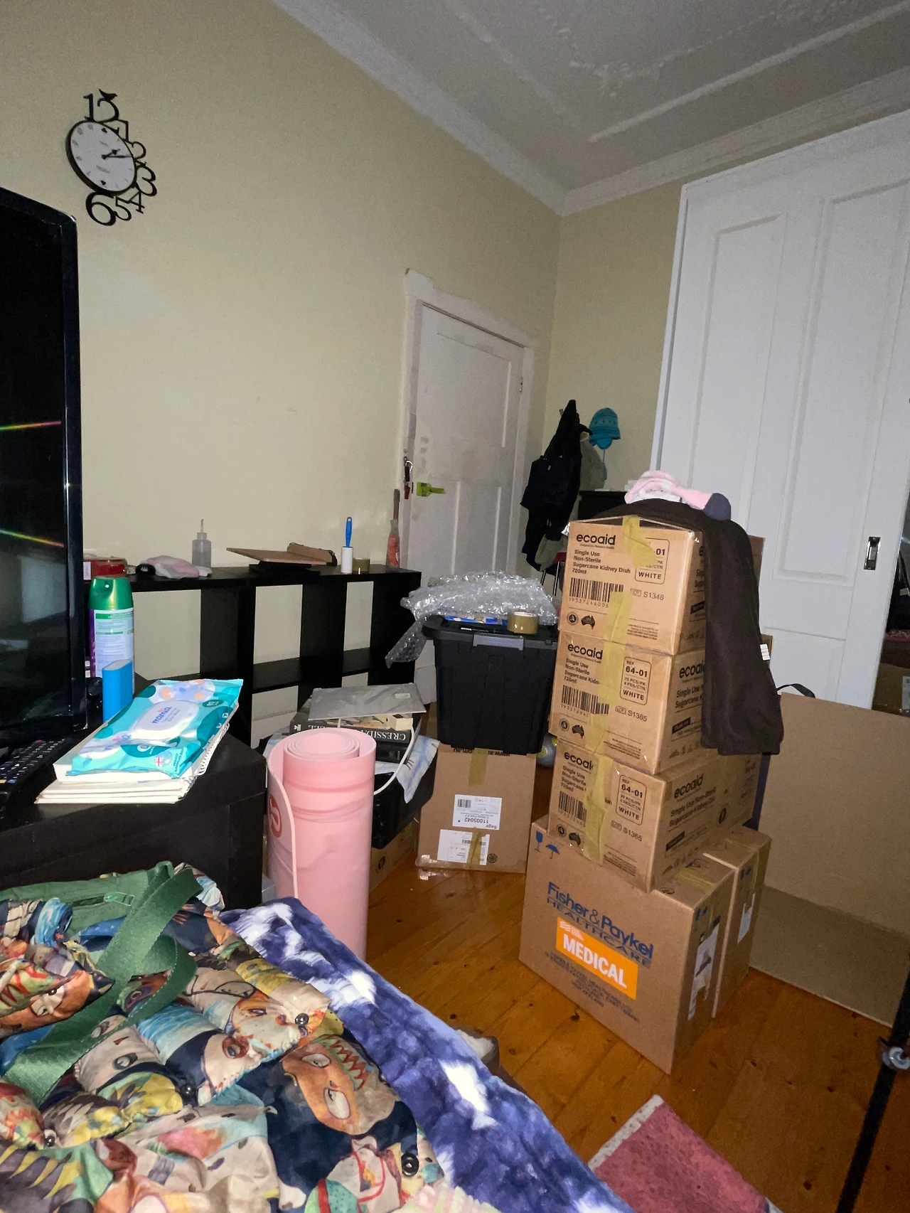 먼지가 가득 쌓인 집을 겨우겨우 치우면서