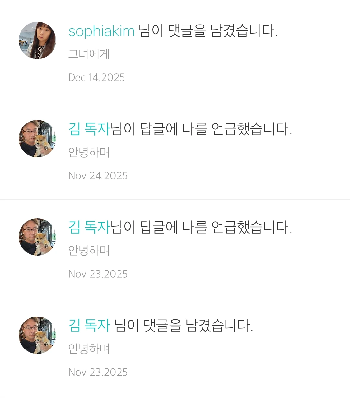 이들은 내 글에 댓글을 남기고 내 글이 맘에 든다고 하면서