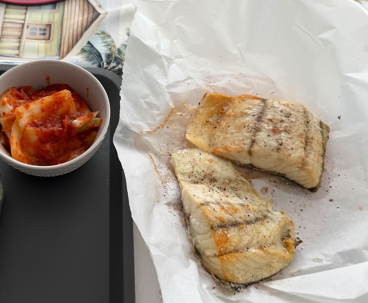 생선과 계란을 추가해서 먹기 시작했다.