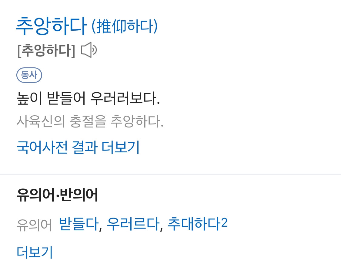 추앙하다. 의 뜻을 찾아 보았다.