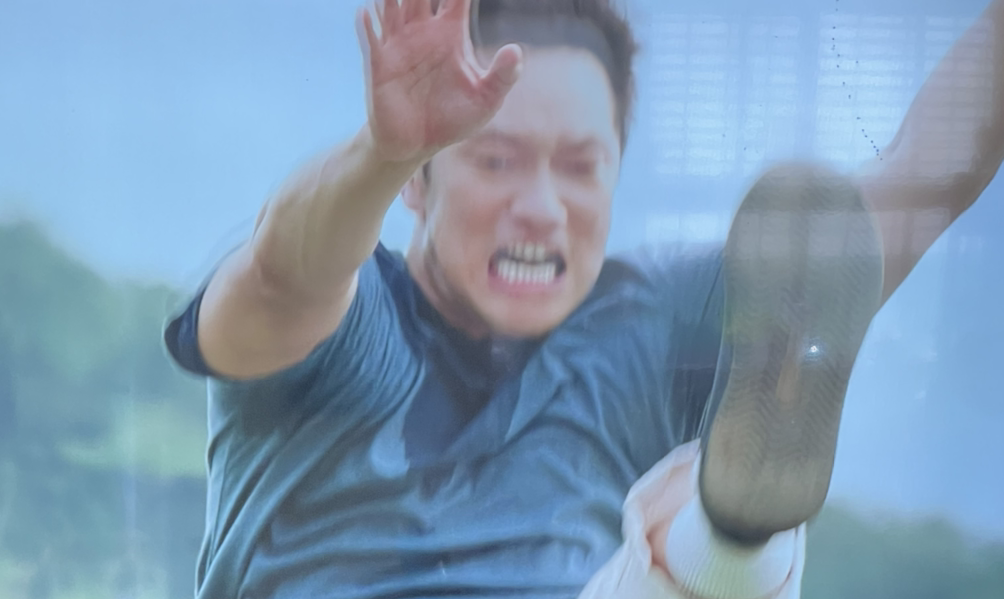술만 마시고 그가 누구인지도 모르는 그 젊은 남자가 갑자기 뒤로 갔다가 미친 듯이 뛰더니 둑을 한 발에 넘는다.