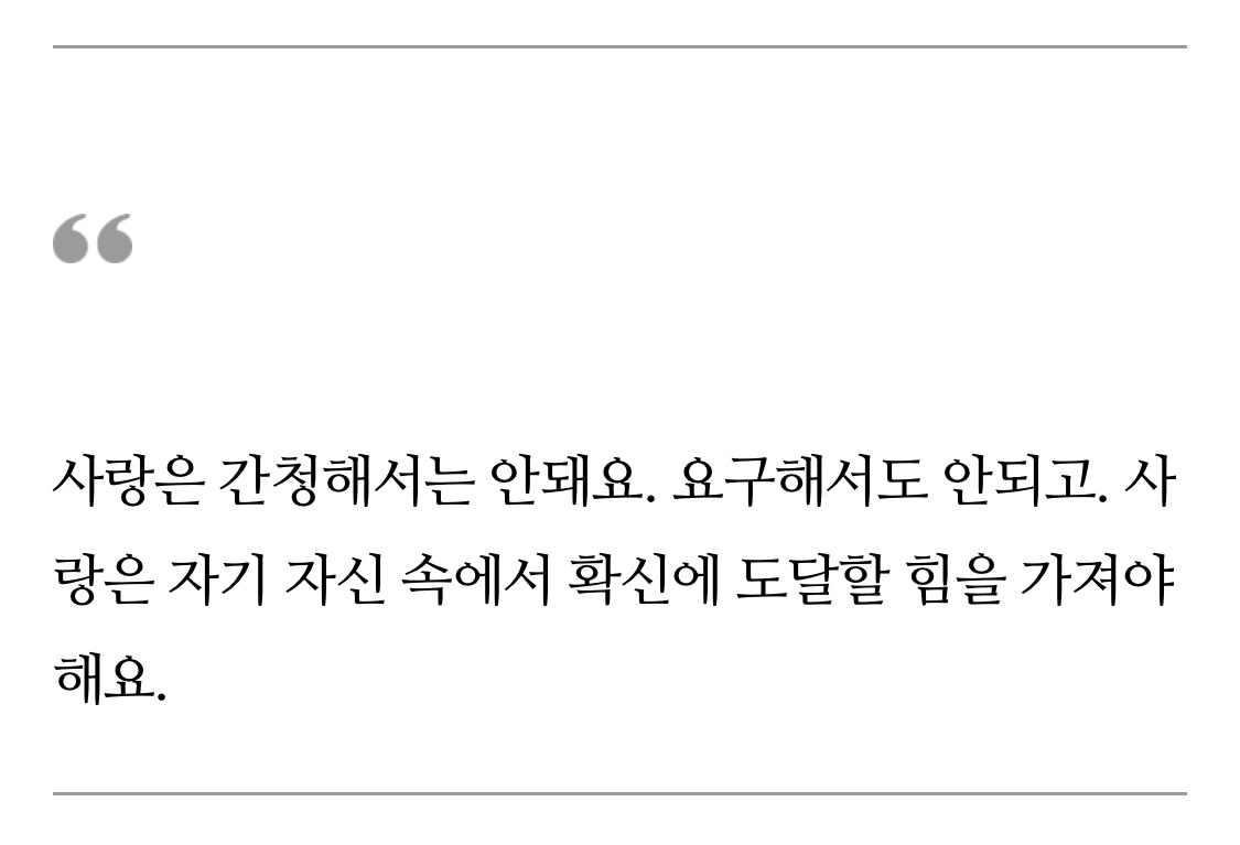 사랑은 간청해서는 안돼요. 요구해서도 안되고,