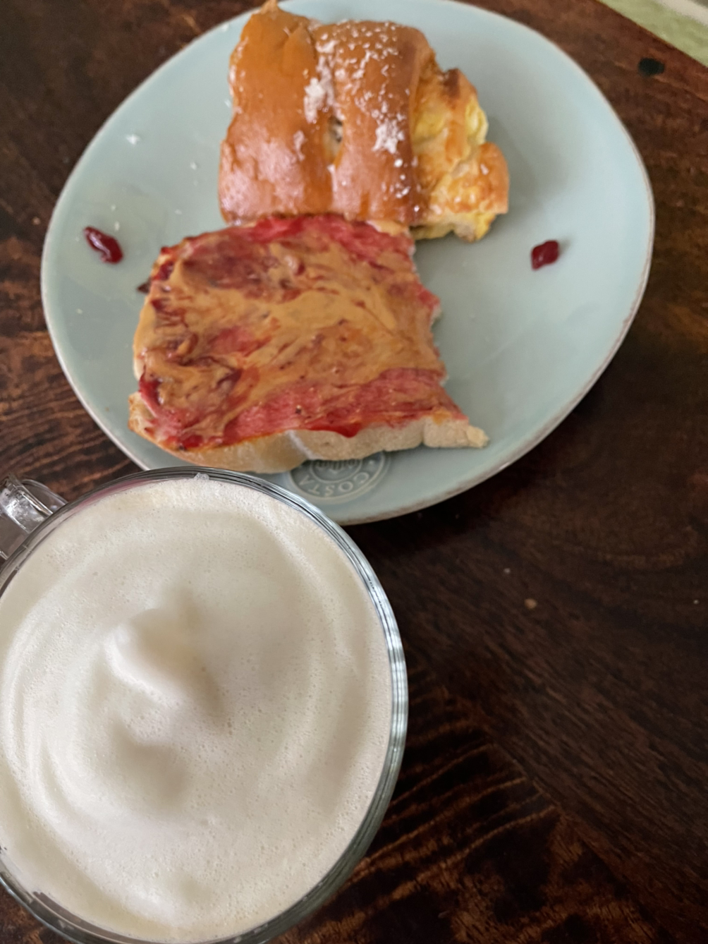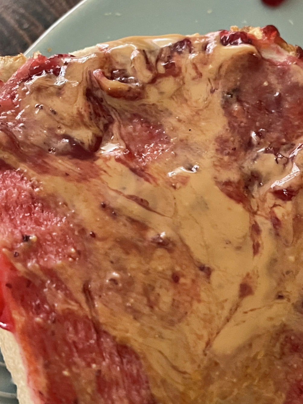 구운 식빵에 링곤쨈과 땅콩잼 바른 것