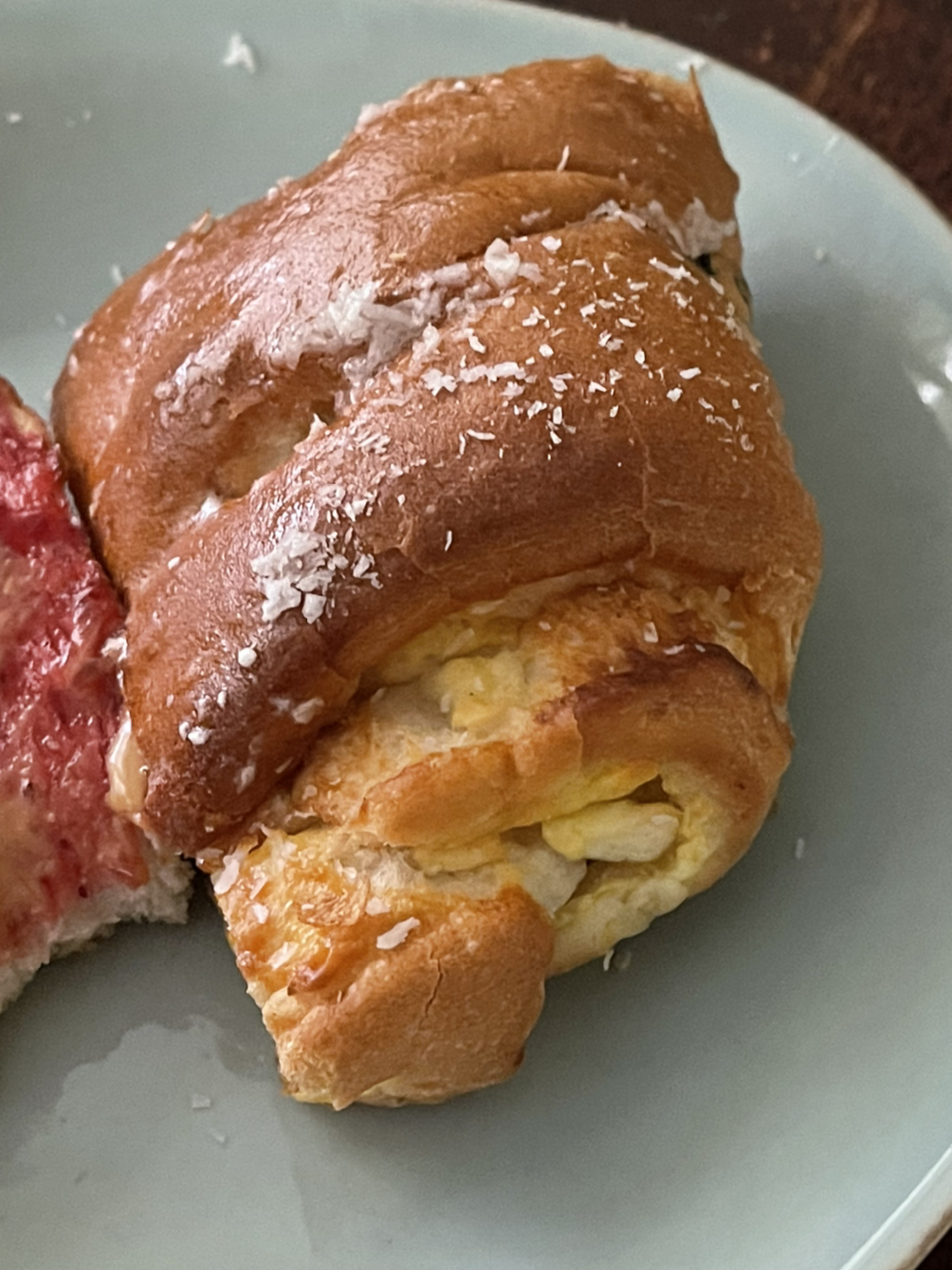 아침부터 전에는 못 먹던 빵을 먹었다.