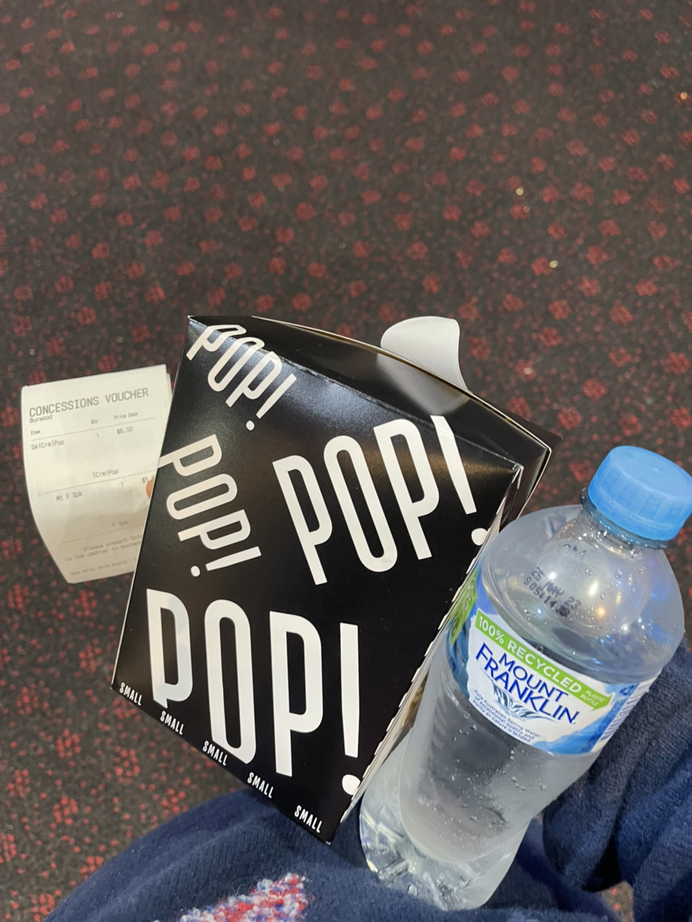 혼자 간식을 사서 달달한 팝콘을 먹어가면서