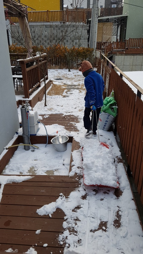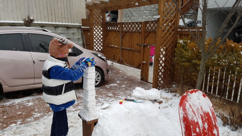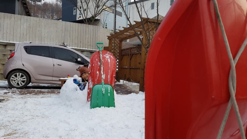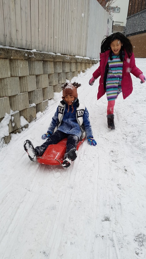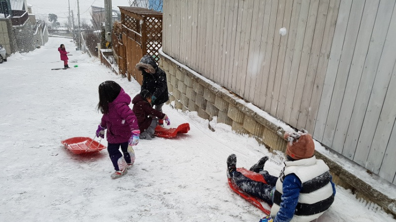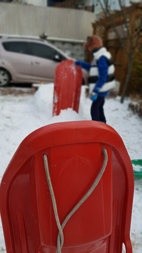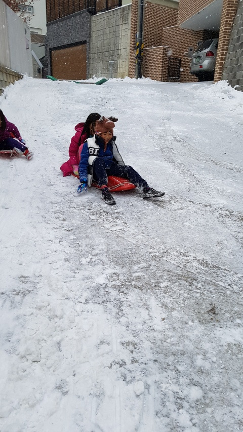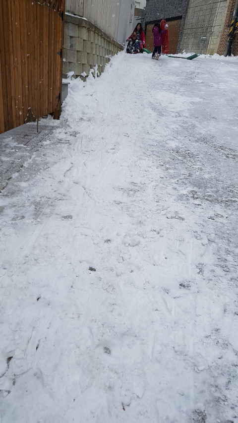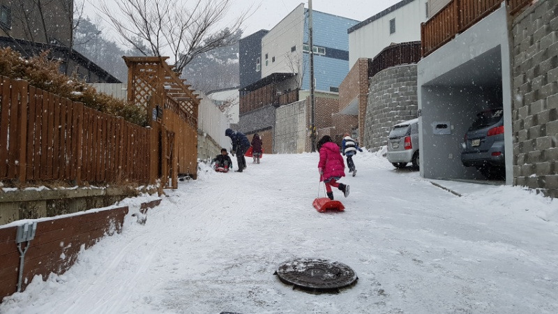 저렇게 눈썰매 슬로프를 만들어 놓았다.