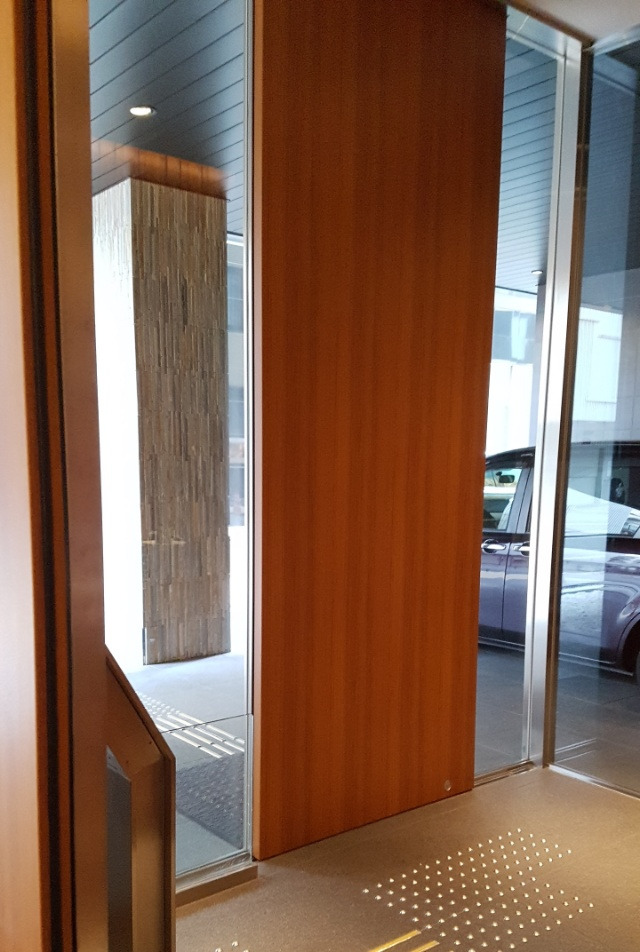 대략 30분 정도 버스를 타니 텐진시내에 도착한다. 어디쯤에서 내려야될까 갈등하다가 한정거장을 더 가봤는데 럭키! 호텔 길건너에 버스가 선다. 시작부터 뭔가 잘풀린다. 길 건너로 보이는 건물. 그래. 구글맵으로 봤던 사진 맞네. 칸데오 후쿠오카 텐진 호텔. 횡단보도를 건너 호텔 건물로 향한다. 건물은 도로와 인접해있지만 입구는 약간 골목으로 들어가야 있다. 그렇게 입구에 서니 어라. 문이 어디야. 여긴가? 계속 두리번 대며 찾아보는데 문이 없어. 분명히 여기가 출입구는 맞는거 같은데. 엘리베이터도 저기 있잖아? 그렇게 한참을 버벅이고 있는데 엘리베이터에서 사람이 하나 나온다. 그러더니 유리문 사이에 있던 나무판이 옆으로 스르르 움직인다. 헐. 저거 문이였어? 뭐야 나무패널이 장식되어 있는줄 알았는데! 우리 셋다 깊은 탄식을 내뱉으며 호텔 안으로 들어갔다. 이게 문일줄이야. 신기하네. 서로 큭큭대며 엘리베이터를 탔다.