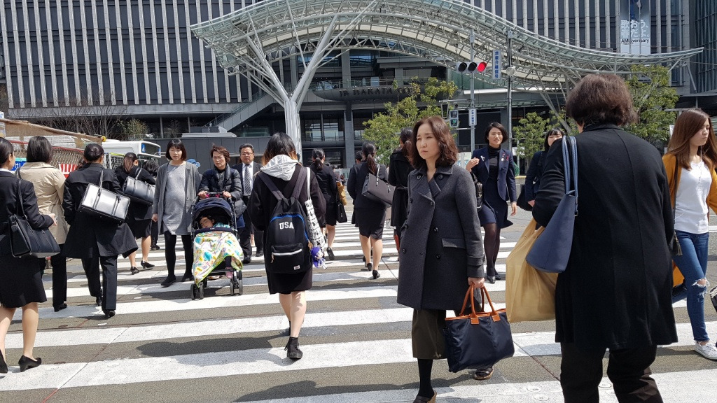100엔버스를 타고 하카타역에 내린다. 도로 중간은 공사로 정신이 없다. 길을 건너기 위해 횡단보도에 서니 금새 사람들로 채워진다. 곧이어 신호가 녹색으로 바뀌고 삐리릭 하는 소리가 들리자 일제히 사람들이 길을 건너기 시작한다. 하카타역이다. 후쿠오카의 중심지라고 할 수 있다. 커다란 광장 뒤로 서울역이나 청량리 역과 같이 역과 하나가 된 쇼핑몰이 있다. 역 건물은 몇가지 쇼핑몰로 구역이 나누어진다. 그리고 역 주변으로 또다시 커다란 건물들이 있으며 요도바시 카메라 같은 전자제품 판매매장이나 백화점 같은 건물들이 위치해 있다. 전철역과 연결되어 있다보니 유동인구가 매우 많다.