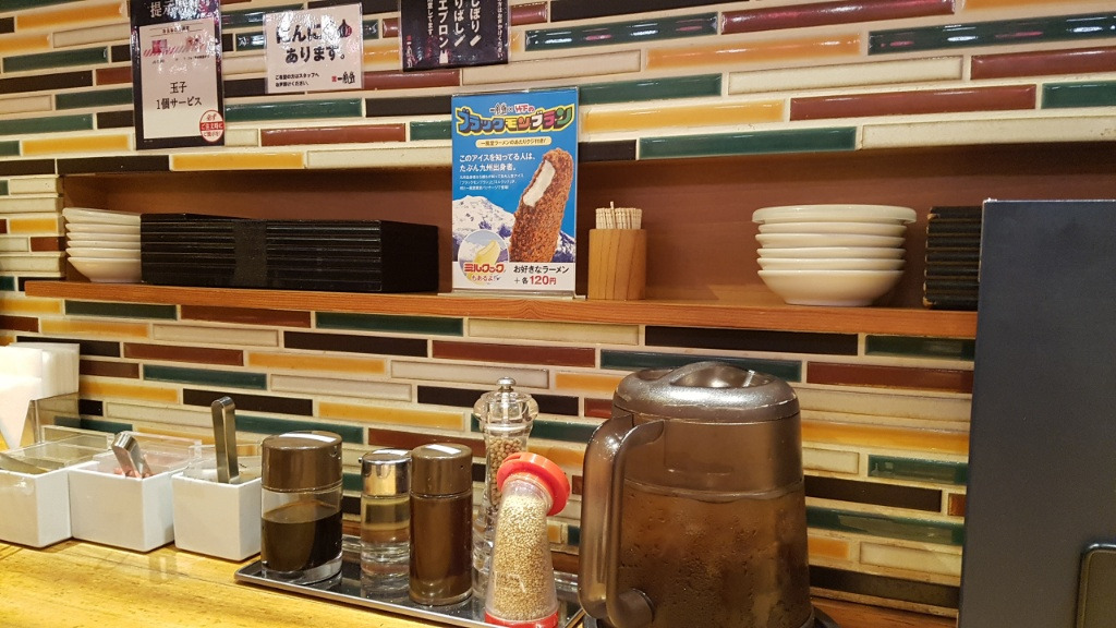 포켓몬센터를 나와 한층을 더 올라간다. 9층에는 다양한 식당들이 입점해있다. 무엇보다 일본에 왔으면 꼭 먹어봐야되는 음식이 바로 라멘. 여기 아뮤프라자 9층에는 잇푸도라멘 이라는 유명한 라멘맛집이 있다. 우리 세식구 모두 면과 국물을 좋아한다. 마침 포켓몬센터 바로 위에 위치해서 동선도 아주 좋았다. 가게 앞에 서성이니 직원 하나가 나와서 몇명이냐고 물어본다. 세명이야. 아 그래? 조금 기다려야되는데 괜찮니? 물론. 기다릴께. 역시 맛집답다. 가게 옆 의자에 앉아 10분정도 기다리니 우리를 부른다. 식사때가 약간 지난 시간이라 그런지 줄이 그다지 길지 않았나보다. 안내받은 자리는 주방 바로 앞자리 테이블이였다. 약간 당황스럽기도 했지만 뭐 셋이 일자로 앉아 있는 것도 나쁘지 않았다. 무어보다 주방이 보인다는 점이 좋았다. 가게는 그다지 크진 않았다. 우리네처럼 4인 테이블은 거의 없고 대부분 2인테이블에 한명 또는 두명의 손님들이 앉아 식사를 하고 있었다. 다행이 한국어 메뉴판이 제공되어서 어렵지 않게 주문을 할 수 있었다. 라멘 두개와 만두, 그리고 공기밥을 시켰다. 직원들은 일사분란하면서도 바쁘게 주문을 받고 움직였다. 손님이 들어오고 나갈때 마다 직원들이 너도나도 이럇샤이마셍! 하고 큰 소리로 외치는데 그것이 여러명이 약간의 타이밍을 두고 외치는 소리가 마치 메아리울리듯 가게안에 울려퍼졌다. 빠른 말투와 행동으로 주문을 받지만 친절함은 결코 잃지 않는다. 활기찬 가게의 모습이 참 좋았다. 이후에도 몇몇 식당들을 가봤는데 대부분 비슷한 분위기가 났다.