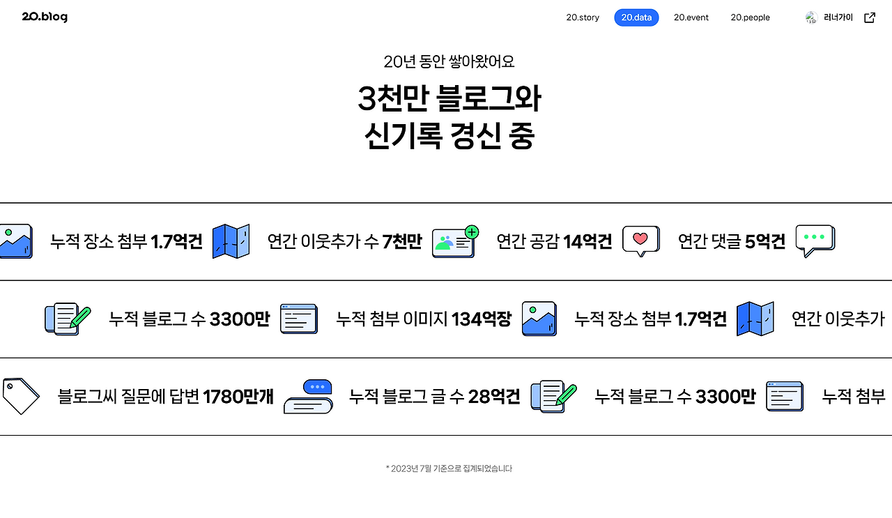 많은 사람들이 네이버 블로그 운영에 열광합니다. 작년 20주년을 맞이하여 네이버에서 발표한 20.blog data 통계 수치를 보면 쉽게 가늠이 되지 않는 데이터를 볼 수 있습니다.