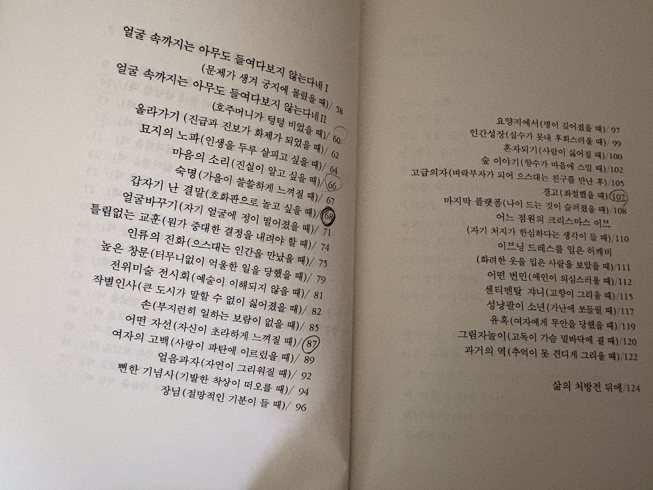 이번에는 차례에 동그라미를 그려놓았다.