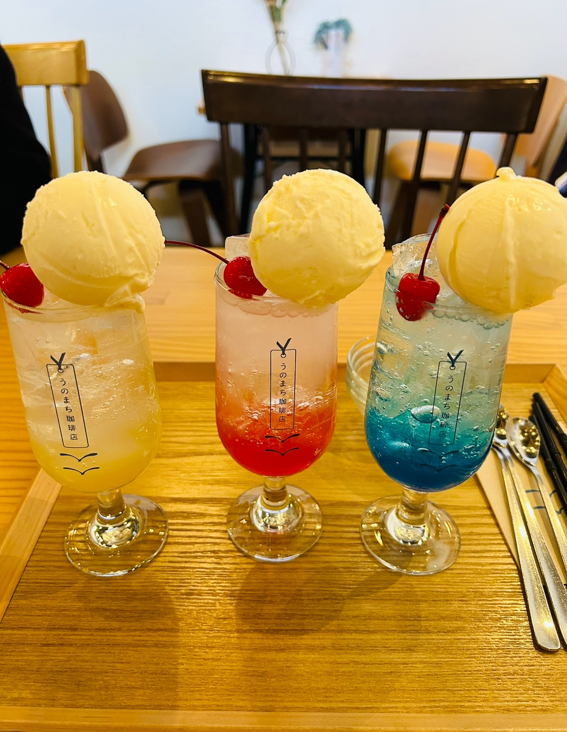 우리는 각자 하나씩 마음에 드는 색깔의 크림소다를 주문하고 자리에 앉는다.