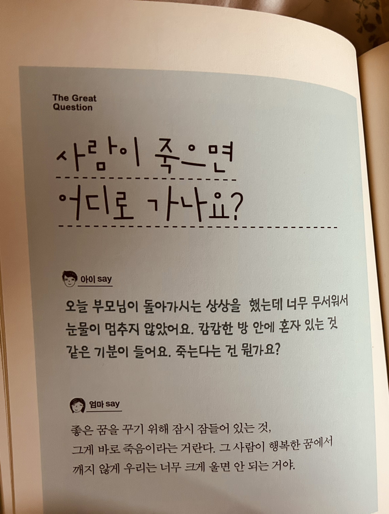 죽음에 대한 아이의 질문에 어떻게 대답하면 좋을지에 대해 읽었던 기억이 난다.