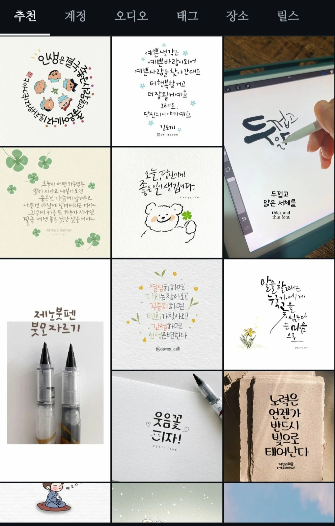 인스타그램과 유튜브를 찾아보니 무수히 많은 캘리그라퍼들이 활동하고 있었다. 잘은 모르겠지만 이미 공급이 수요를 넘어서고 있는 것처럼 보였다.