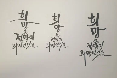 "그럼요. 저는 제 글씨 잘 썼다고 생각하고 만족해요. 스스로 글씨가 마음에 들면 그땐 진짜 자부심이 생길 겁니다. 지금도 잘 쓰고 계세요. 점점 늘고 있는 게 보여요. 당장 뭘 써 보여도 일반인들이 봤을 땐 다 잘 썼다고 할걸요? 하지만 '와~ 예쁘다.' 하고 끝. 여기서 더 나아가 내 글씨를 보는 사람이 사고 싶은 생각이 들 정도로 쓰셔야죠. 지금처럼 꾸준히 쓰시다 보면 됩니다."