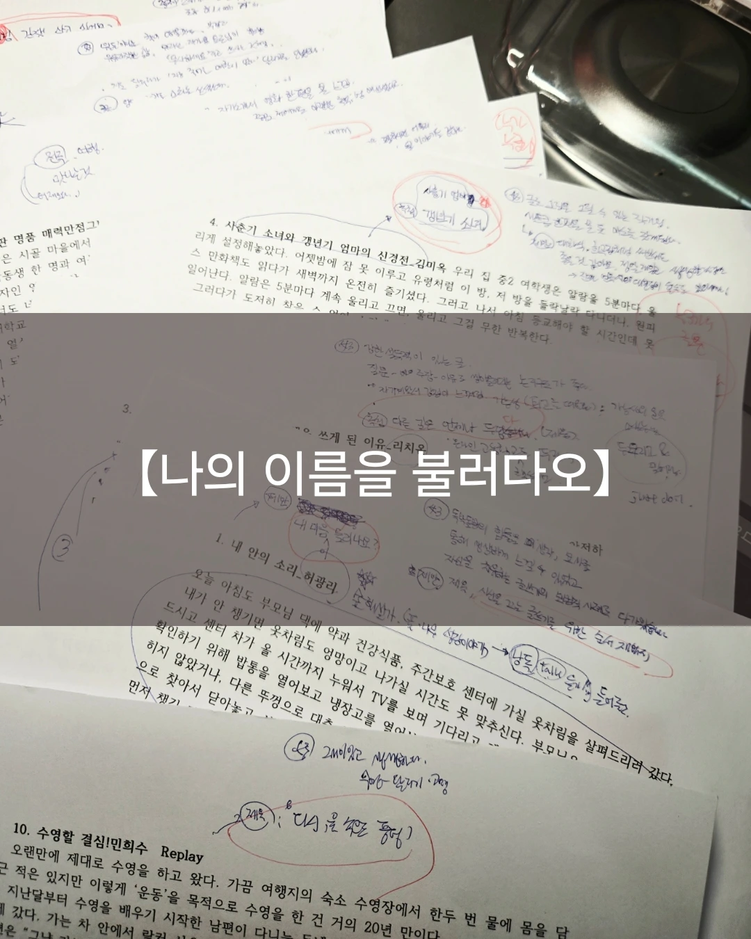 어제 백일백장 합평회에 모인 나를 포함한 10명의 작가님들의 글을 모임에 가는 지하철에서 줄을 그으며 읽었다. 그리고 만일 내가 그 글을 쓴 작가라면 어떤 제목을 그 글에 어떤 제목을 지었을까 생각해 본다. 작가님들 글에 나만의 제목을 하나씩 선물해 본다.