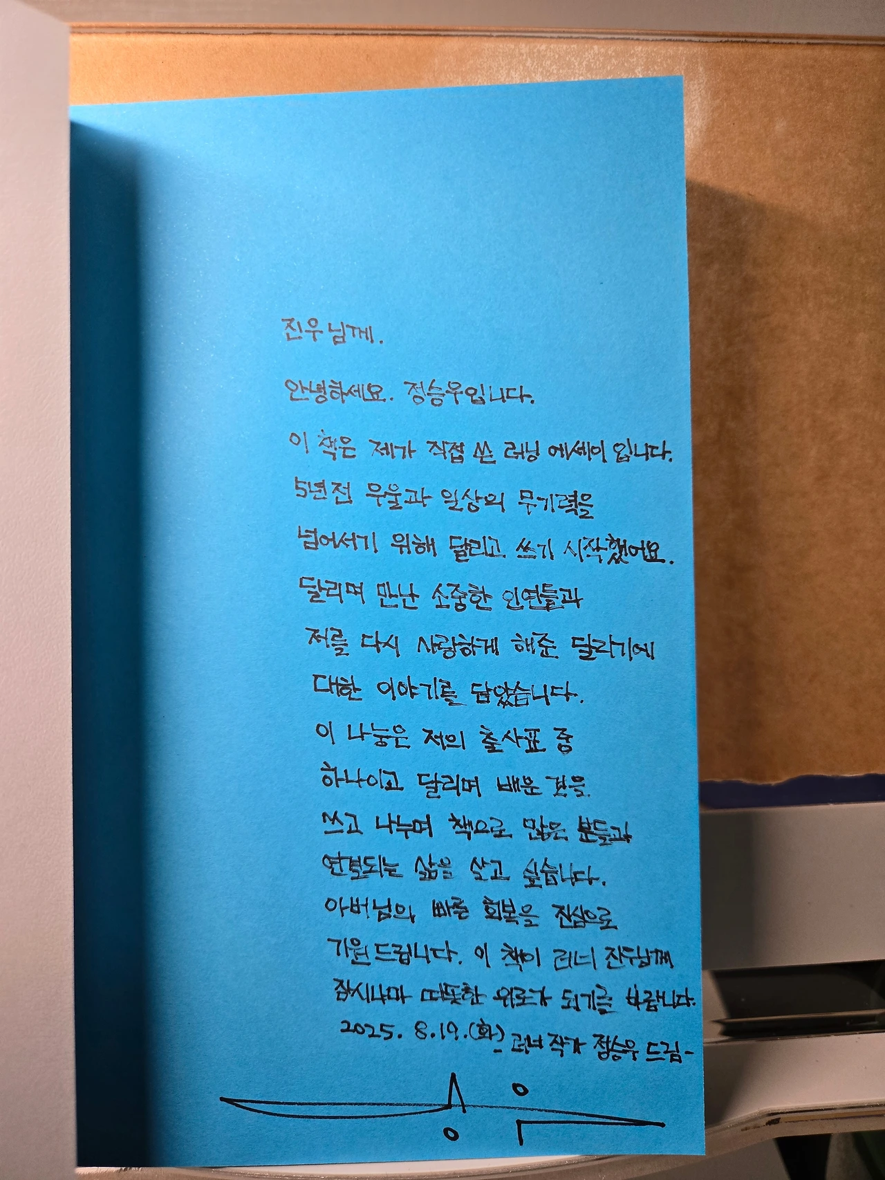 아버님께서 꼭 회복하시길 바랍니다. 그리고 이 책이 러너 진우 님께 조금이나마 따뜻한 시간이 되기를 바랍니다."