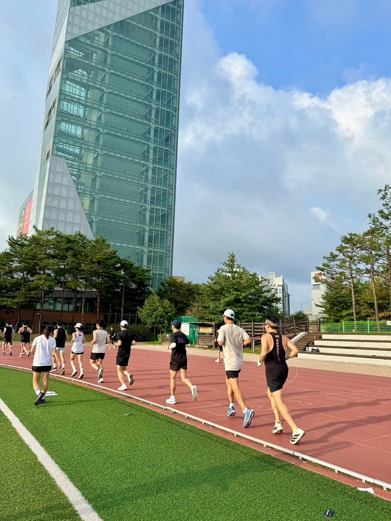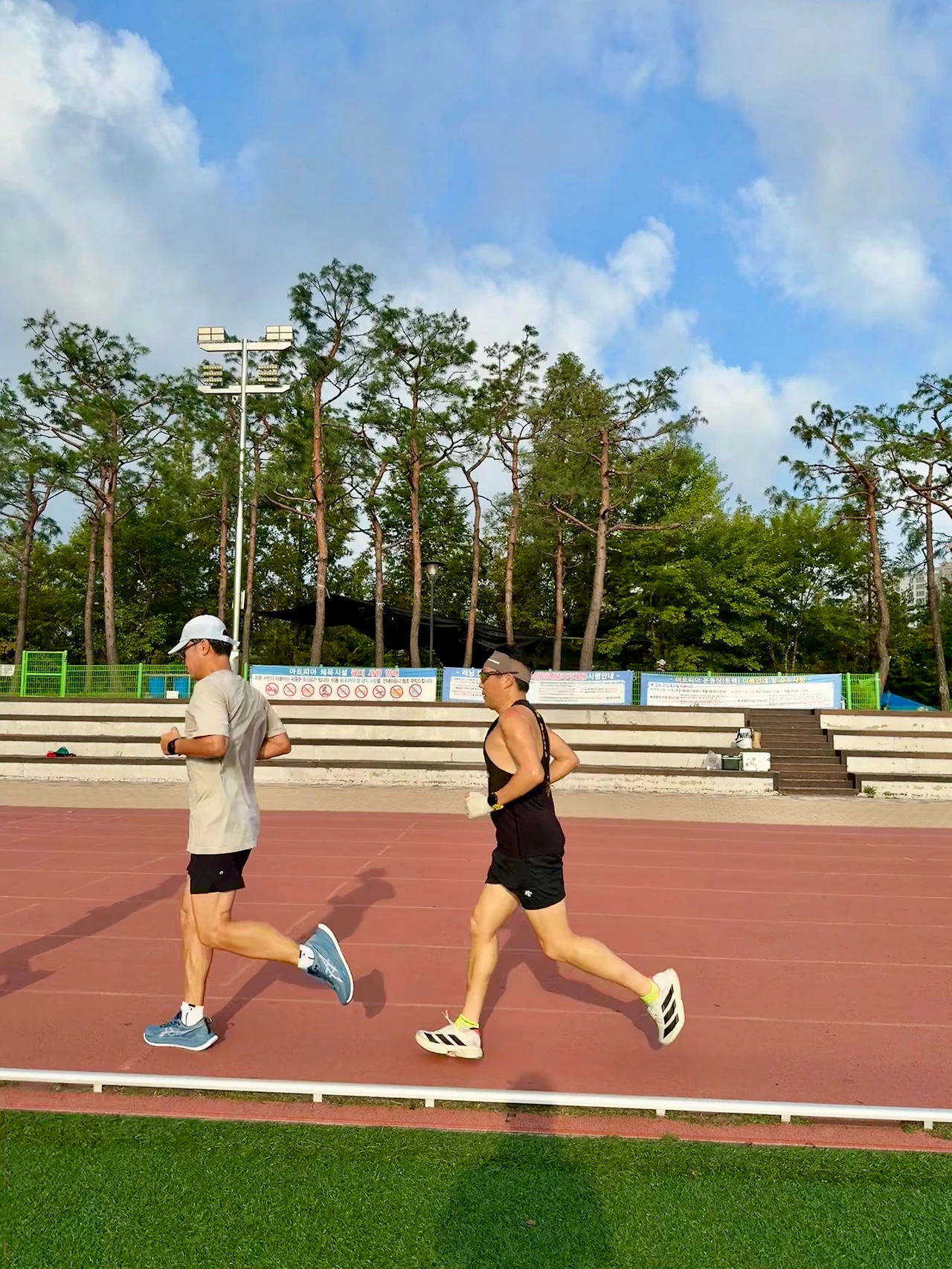 2km까지는 조깅으로, 3km부터는 450 페이스로 달려야 한다. 따가운 햇볕을 그대로 맞으며 뛰는 사막 같은 트랙. 조깅부터 땀이 비 오듯 쏟아지고 전날부터 바닥난 멘털과 체력은 금세 한계를 드러낸다. 저 뒷조로 갔어야 했나. 후회할 겨를도 없이 트랙 위 속도는 조금씩 빨라진다.